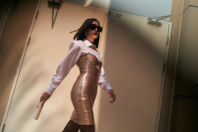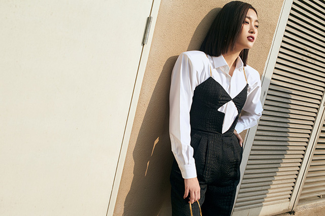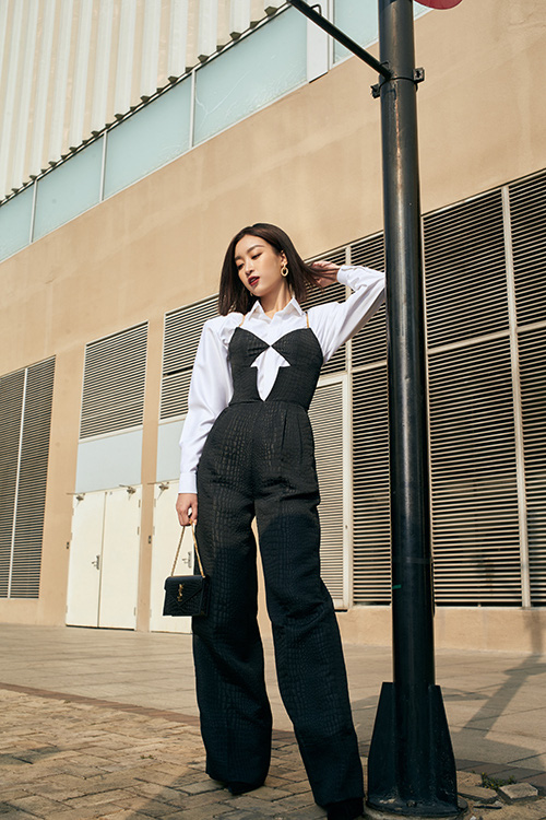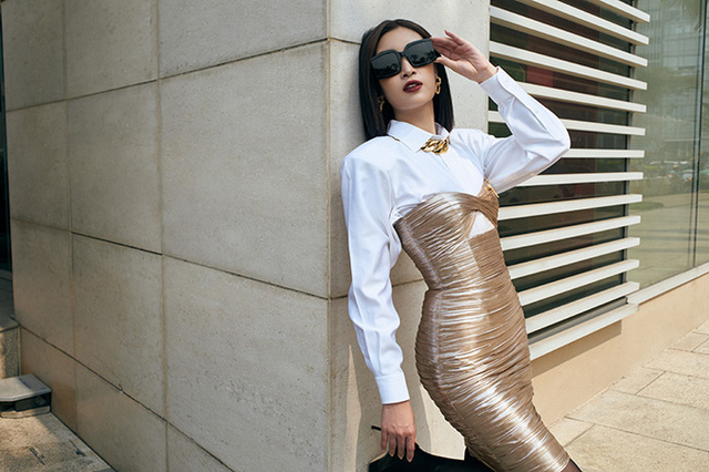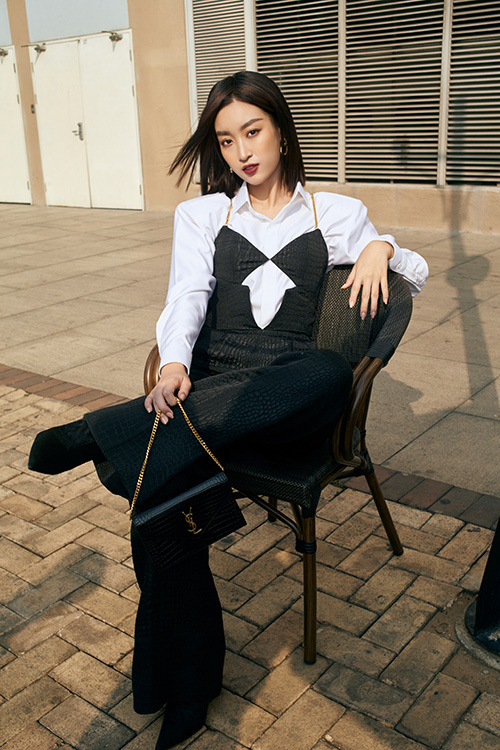 Sơ mi trắng basic được phối cùng jumpsuit kiểu dáng độc đáo, phụ kiện đi kèm là cutch của Yves Saint Laurent.Lối make-up đậm cùng những biểu cảm sắc lạnh trên gương mặt lại càng hòa hợp với mái tóc ngắn của Linh.Váy xẻ cổ chữ V táo bạo cũng được Đỗ Mỹ Linh chọn lựa để giúp hình ảnh của cô trở nên mới mẻ và ấn tượng hơn. Mix cùng mẫu váy sexy là phụ kiện kim loại to bản theo đúng trend thời trang 2020.Tạm rũ bỏ hình ảnh 'người đẹp thân thiện' với váy áo thướt tha, Đỗ Mỹ Linh không ngại thử nghiệm bản thân qua lối tạo dáng và mix trang phục theo trào lưu mới.Suit xẻ ngực của hoa hậu trở nên bắt mắt hơn bởi được trang trí nơ bướm to bản sau lưng.Qua những thiết kế độc đáo của nhà thiết kế Chung Thanh Phong, hoa hậu khéo léo khoe trọn vẻ đẹp hình thể.