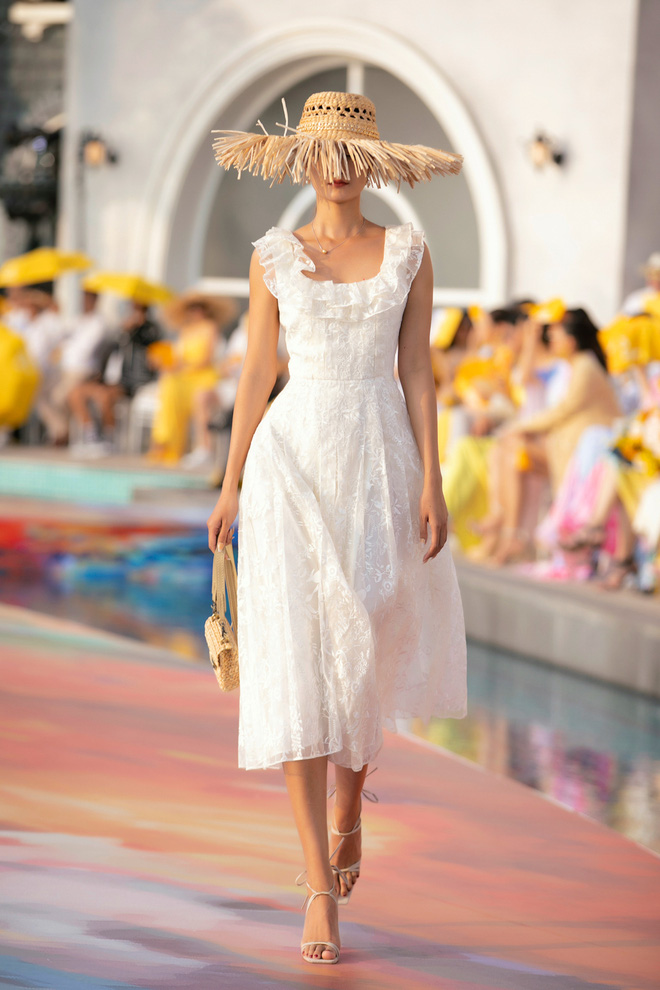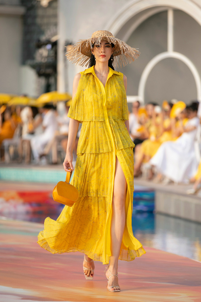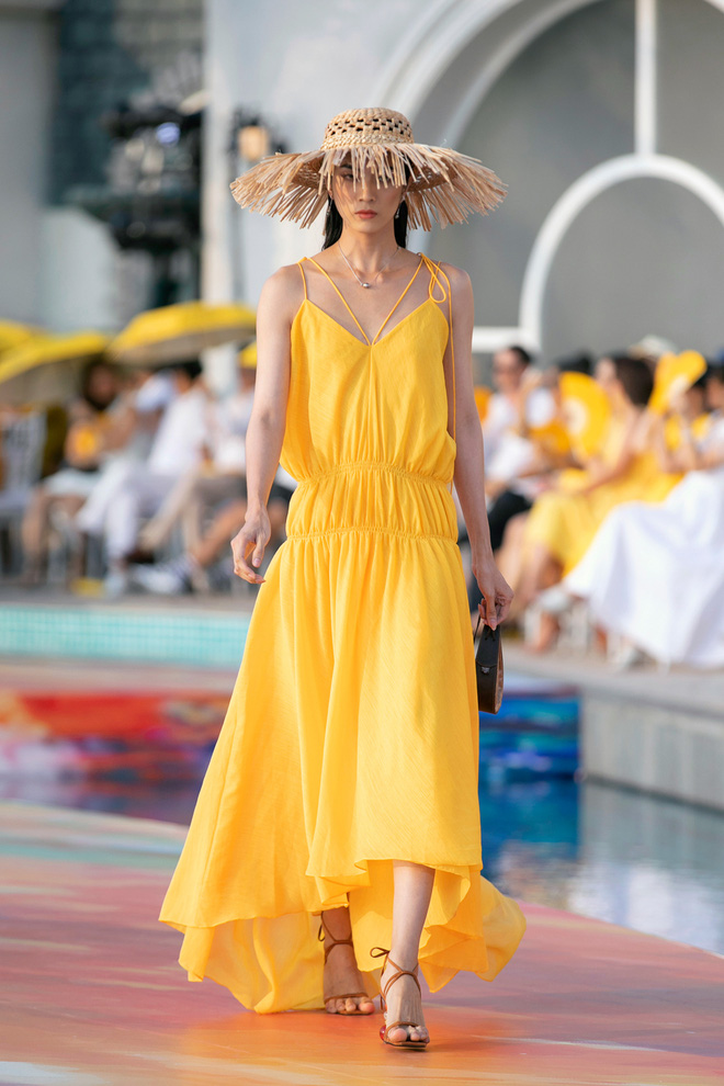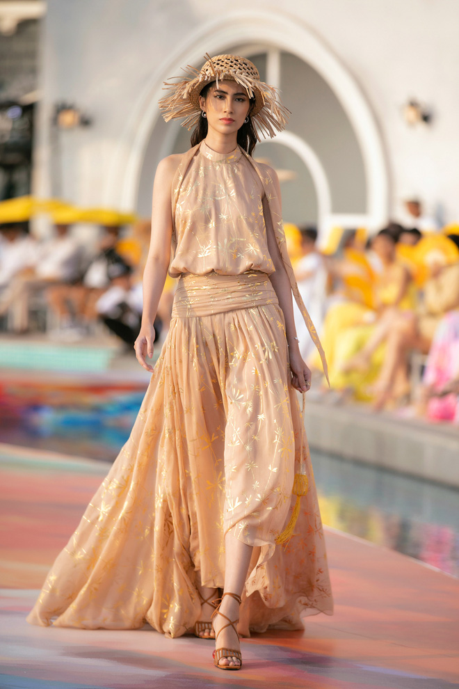 Các thiết kế trong bộ sưu tập cũng nhận được nhiều lời khen vì sự tinh tế, chất thơ mộng của ánh nắng hè thấm đẫm trong từng đường kim mũi chỉ. Các mẫu váy ôm tôn dáng, xẻ tà cao quyến rũ phù hợp tinh thần tự do của mùa hè nhưng vẫn đảm bảo độ sang trọng, thanh lịch. Loạt trang phục được lần lượt trình làng theo sự thay đổi màu sắc của vùng trời miền biển lúc chiều tà.
