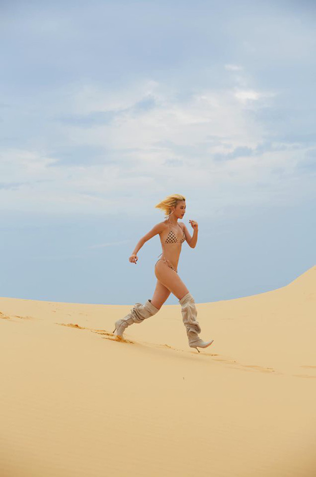 Mỗi vùng đất cô nàng đến, cảnh quan thiên nhiên hiếm khi được đề cập tới mà thay vào đó là sòn sòn cả tá hình ảnh thời trang ra đời. Hoang mạc nắng gió, bờ bãi mênh mang trải dài hay chốn đô thành náo động - địa điểm nào cũng được nàng fashionista quy ra thành OOTD hết. Thú nhất ở chỗ là dân tình ưa mặc đồ gọn nhẹ để dễ hòa mình vào nhịp thở thiên nhiên thì Quỳnh Anh Shyn lại nhiệt thành đầu tư từ đầu đến chân, quần áo toàn món đồ kỳ lạ hiếm có khó tìm, tóc tai mặt mũi cũng được tô điểm kỹ càng chẳng khác nào như sắp xộc thẳng lên thảm đỏ. Chung quy là cô rất chăm!