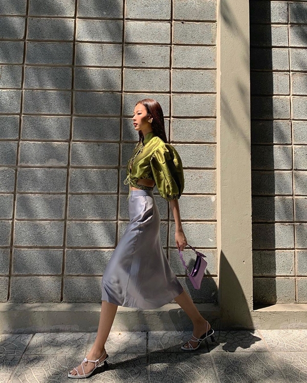 Nếu không sở hữu vóc dáng mình hạc xương mai kiểu như Phí Phương Anh, hay vòng bụng săn khắc kiểu Khánh Linh The Face thì tốt nhất bạn đừng nghĩ đến diện diện váy lụa. Kiểu chân váy này sang trọng bay bổng thật đấy nhưng bao nhiêu nhược điểm vòng bụng đều bị phơi bày ra hết.