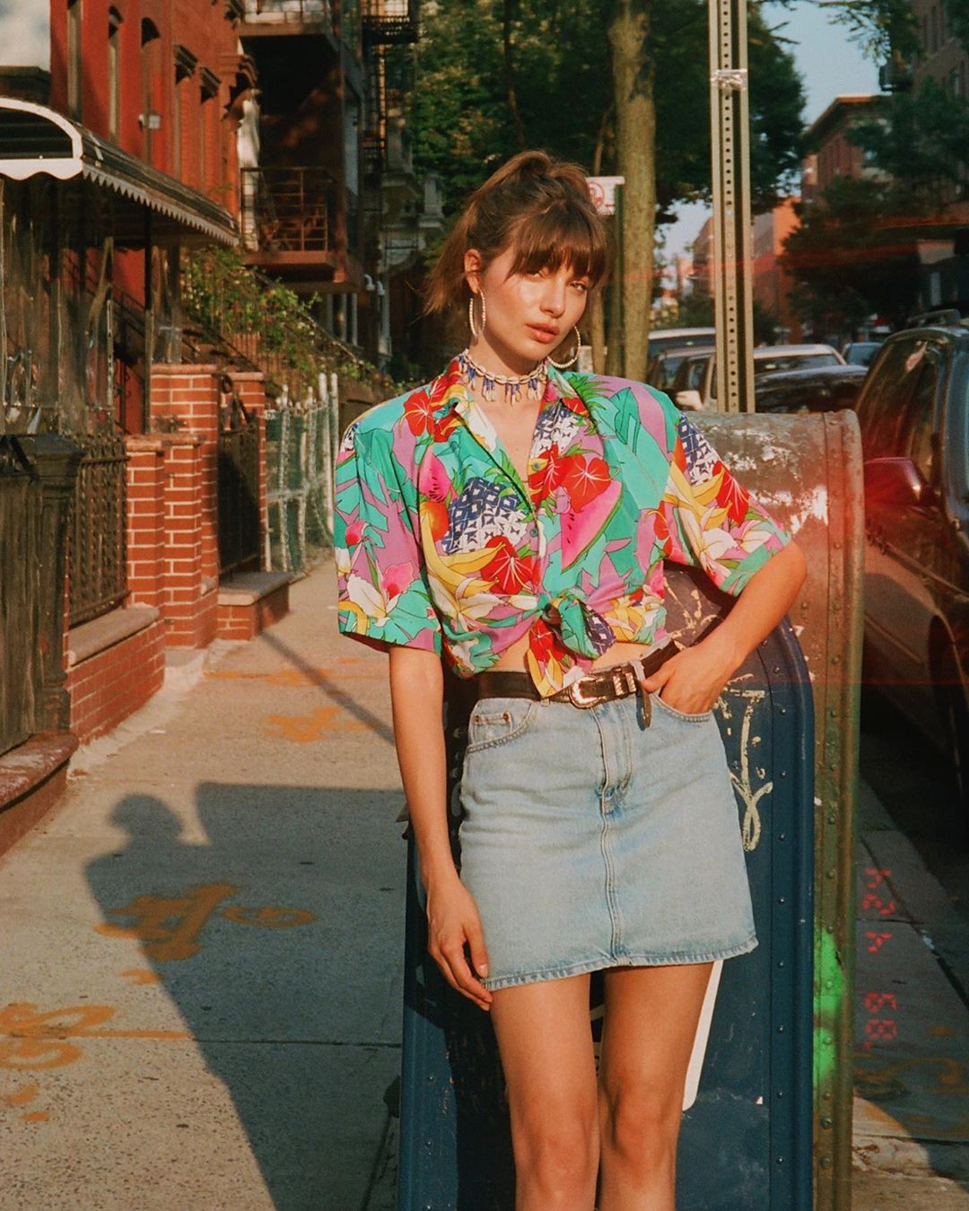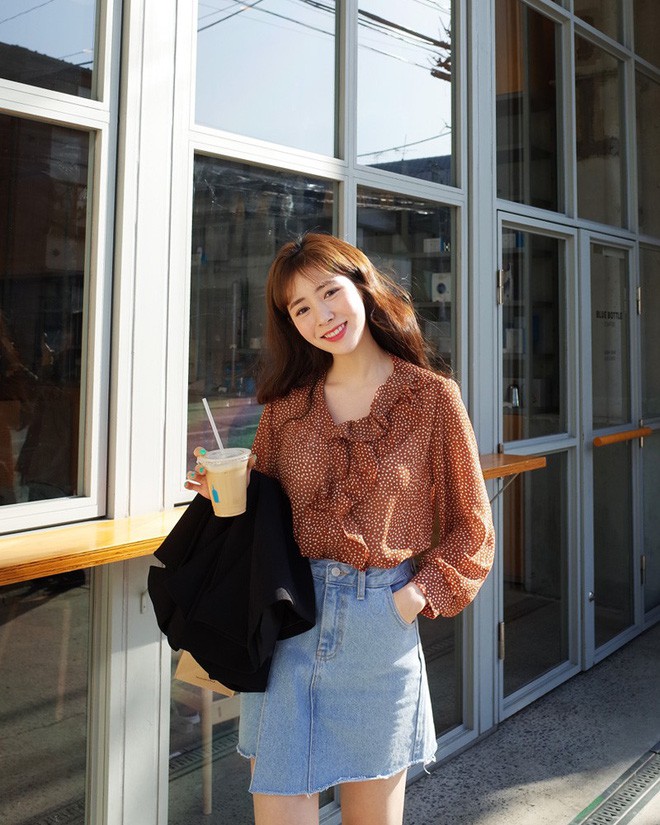 Ngược lại với chân váy lụa là chân váy denim hay kaki đứng dáng, chất liệu dày dặn tưởng đâu sẽ che giấu được vòng bụng chưa thon gọn nhưng nào ngờ đây cũng là thiết kế dễ lộ bụng, đặc biệt là với chân váy denim cài khuy trước.