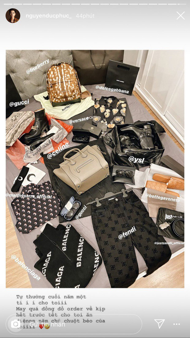 Chỉ cần nhìn qua loạt đồ hiệu được nam ca sĩ mới sắm đều có giá trị ước tính lên đến nửa tỷ đồng. Mặc dù Tết năm ngoái, Đức Phúc từng gây sốt khi chi 240 triệu mua đồ hiệu nhưng với tốc độ chi tiền liên tục như hiện tại, chắc hẳn năm qua là một năm ăn nên làm ra của anh.