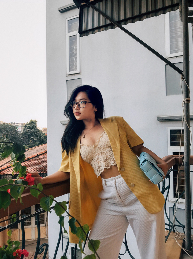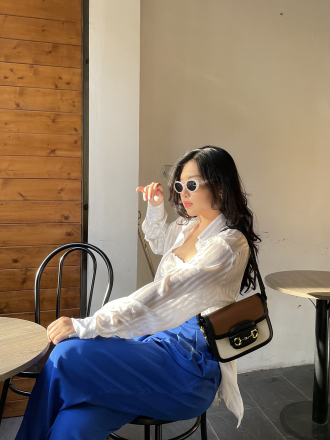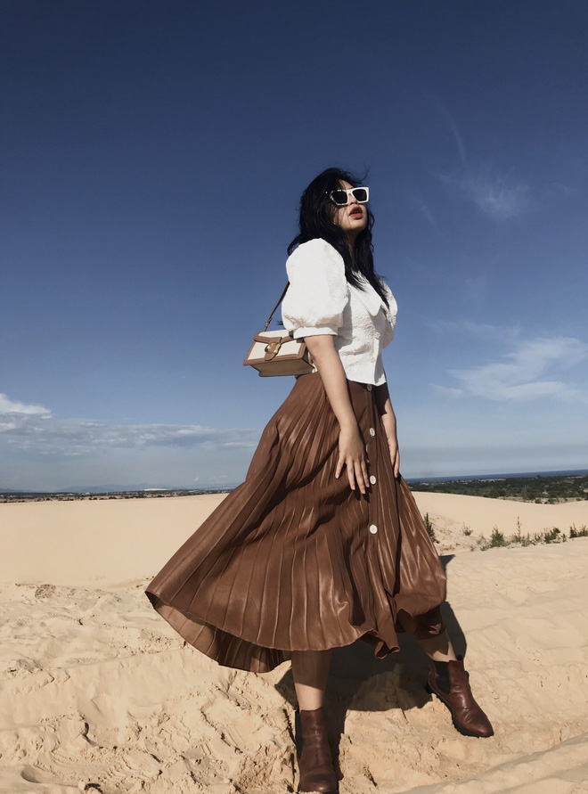 Ngoài ra, sử dụng thắt lưng hoặc các phụ kiện như túi xách làm điểm nhấn ở eo vừa giúp các bạn tránh bị nuốt dáng bởi đồ rộng, lùng bùng lại vừa làm điểm nhấn cho outfit trở nên nổi bật hơn. Nếu bạn vẫn gặp khó khăn khi mua đồ online thì có thể đặt may những item cơ bản như quần và chân váy. "Và nhớ tham khảo từ những người bạn có cùng phom người giống mình để hỏi xem họ mua ở đâu nha, đây là cách nhanh nhất đó" - Minh vui vẻ chia sẻ.