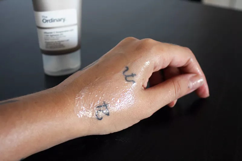 The Ordinary Vitamin C Suspension 23% + HA Spheres 2% thiết kế dạng tuýp tiện dụng, có màu trong suốt, hơi đặc, không mùi, kết cấu hơi lợn cợn do thành phần bột vitamin C, khi mới bôi có thể hơi khó chịu. Vì vậy BTV Jenna khuyên bạn chỉ nên lấy từng chút serum, và thoa nhẹ đến khi sản phẩm thẩm thấu hoàn toàn, không nên xoa quá mạnh tay vì có thể khiến da bị kích ứng.