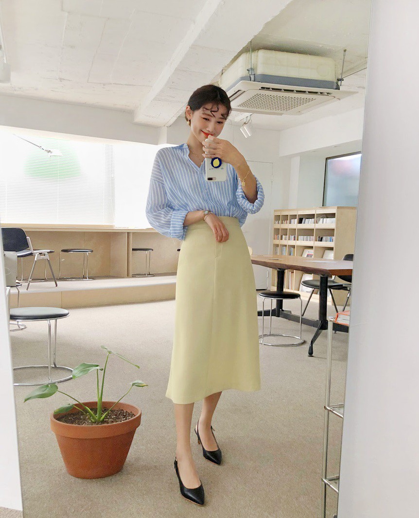 Chân váy midi sẽ giúp bạn giấu tiệt những nhược điểm như: đầu gối củ lạc, nhăn nheo, chân đầy "hoa gấm" hay đùi kém thon gọn… Nhưng bên cạnh đó, độ dài đến bắp chân của item này còn đảm bảo vóc dáng của bạn trông thật cao ráo, thay vì rơi vào nguy cơ bị dìm dáng thảm hại như khi diện chân váy dài. Và trong trường hợp bạn diện chân váy midi, lời khuyên sơ vin để "hack" vài phân chiều cao vẫn luôn hữu dụng nhé!