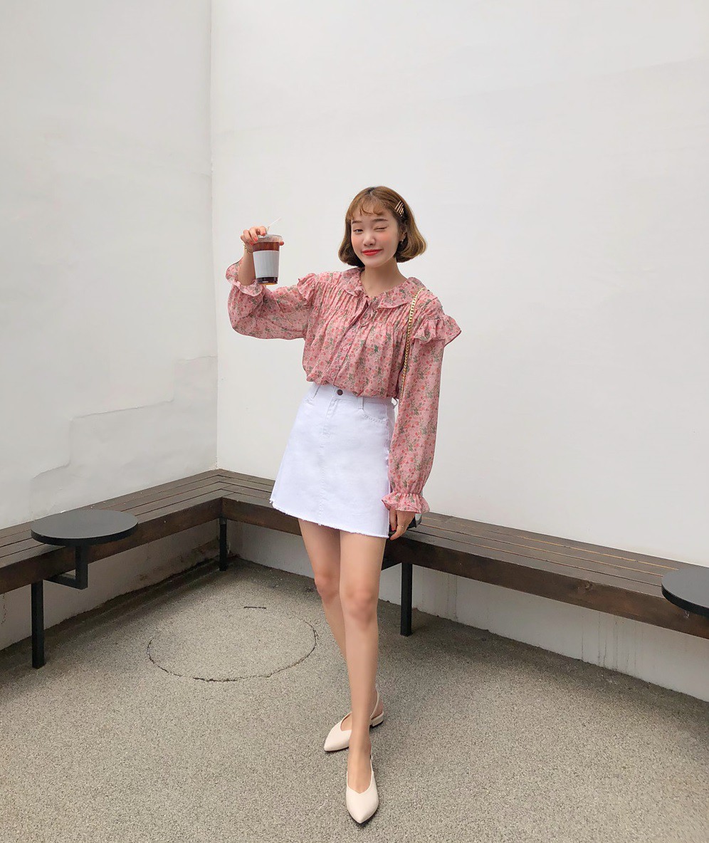 Nếu bạn sở hữu một đôi chân khá mịn màng, thon thả nhưng khổ nỗi lại "ngắn một mẩu", bạn rất nên ưu ái diện chân váy ngắn. Item với độ dài trên đầu gối này sẽ phô diễn đôi chân của bạn ở ngưỡng vừa đủ để tạo hiệu ứng thanh thoát, cao ráo cho vóc dáng. Từ đó, chiều cao khiêm tốn của bạn sẽ bị lu mờ, chỉ còn lại vẻ xinh tươi, trẻ trung và ngọt ngào. Cũng đừng quên thao tác sơ vin khi bạn diện chân váy ngắn, vóc dáng sẽ được "hack" triệt để đấy!