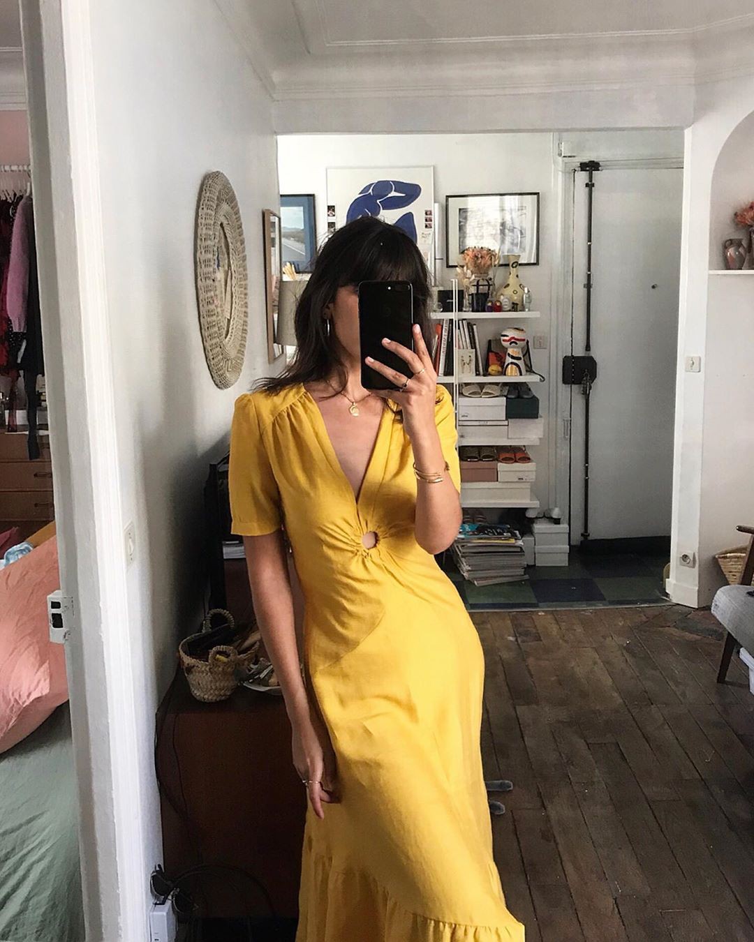 Không khó để nhận ra, váy cổ chữ V là item được các quý cô người Pháp ưu ái bậc nhất. Điều này rất hợp lý bởi chúng ta có thể liệt kê một danh sách dài những ưu điểm của váy cổ chữ V, chẳng hạn như: tinh tế và sang trọng, tạo hiệu ứng dáng thon, luôn chuẩn mốt và hơn hết, ai mặc cũng đẹp… Để bước thêm một bậc trên nấc thang cuốn hút và sành điệu, bạn hãy học theo quý cô người Pháp, nhấn nhá thêm một chiếc vòng cổ tối giản nhé!