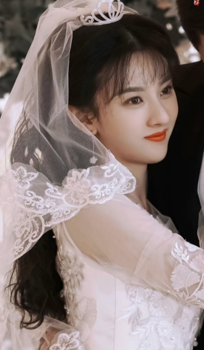 Tạo hình mặc váy cưới trong bộ phim mới đây của Mao Hiểu Đồng nhanh chóng gây sốt ở các diễn đàn. Bộ váy của nữ diễn viên như đưa người xem ngược dòng thời gian về những năm 80, 90, như thời bố mẹ chúng ta làm đám cưới vậy. Chất liệu lụa satin và ren, tay áo hình chuông, cổ chữ V, găng tay, đi cùng là trang sức ngọc trai, đôi môi đỏ thuần cùng hàng lông mày đậm hay khăn trùm đầu high-low là những dấu ấn của cô dâu trong giai đoạn này. Mao Hiểu Đồng thực sự xuất sắc trong tạo hình cô dâu xinh đẹp mỹ miều, đầy hoài niệm này.