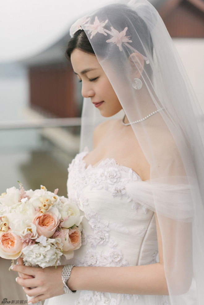 Kết thúc chuỗi ồn ào với Phạm Băng Băng, Trương Hinh Dư có cho mình một đám cưới trong mơ với chồng là sĩ quan đặc công Hà Tiệp. Trong ngày trọng đại, nữ diễn viên khoác lên mình tấm váy cưới trắng tinh khôi, thiết kế trễ vai với phần tay lỡ, tóc búi cao khoe gương mặt xinh đẹp, đầu đội khăn trùm đầu bằng voan diềm viền trắng ở dưới, phục sức đơn giản bằng đôi khuyên tai ngọc trai. Tuy đơn giản nhưng Trương Hinh Dư vẫn cực kỳ sang trọng và xinh đẹp.