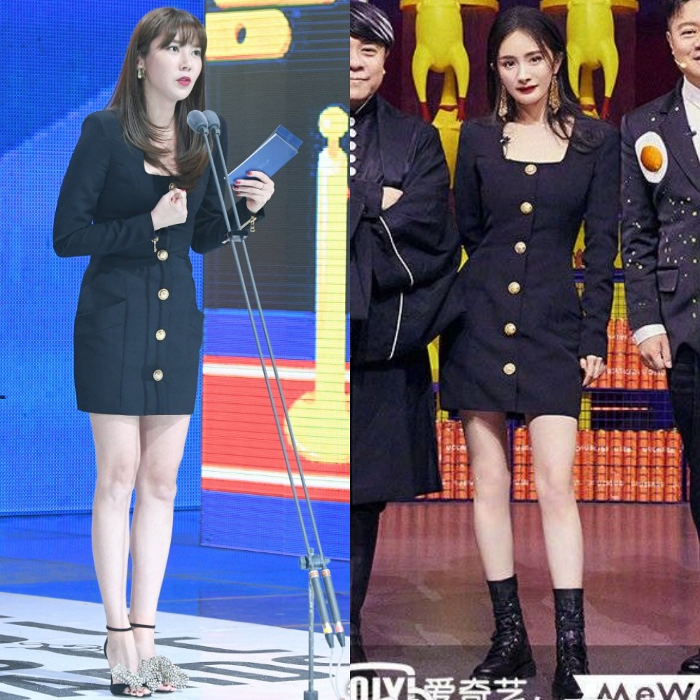 Dù cùng diện 1 bộ cánh nhưng rõ ràng Dương Mịch và Son Dam Bi mang đến ấn tượng khác biệt hoàn toàn. Son Dam Bi mix váy cùng sandal mảnh mai nữ tính; Dương Mịch lại thời thượng khi diện cùng boots da. Và rõ ràng trong cuộc chiến đụng hàng lần này, Dương Mịch đã lấn át Son Dam Bi vì cách lên đồ tạo cảm giác hiện đại, thú vị hơn hẳn.
