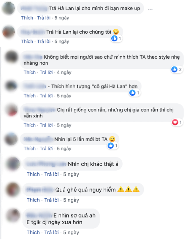 Tuy nhiên mới đây, nữ diễn viên đã khiến NHM bất ngờ khi thử nghiệm phong cách trang điểm mới. Ngỡ rằng màn "lột xác" sẽ khiến Trúc Anh trở nên ấn tượng hơn, tuy nhiên cô lại gây thất vọng với quả đầu tổ quạ, mắt xếch như phù thuỷ. Nếu không nói, chắc chẳng ai nhận ra người trong ảnh là "Hà Lan" ngây thơ, trong sáng ngày nào.