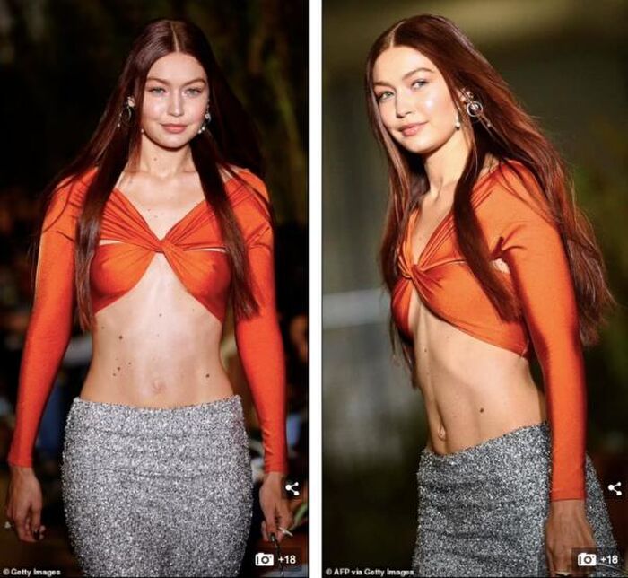 Trong buổi diễn mới nhất của nhà mốt Coperni tại tuần lễ thời trang Paris ở Pháp, "mẹ 1 con" Gigi Hadid khiến dân tình choáng khi khoe vóc dáng thon thả, đặc biệt là vòng eo phẳng lì.