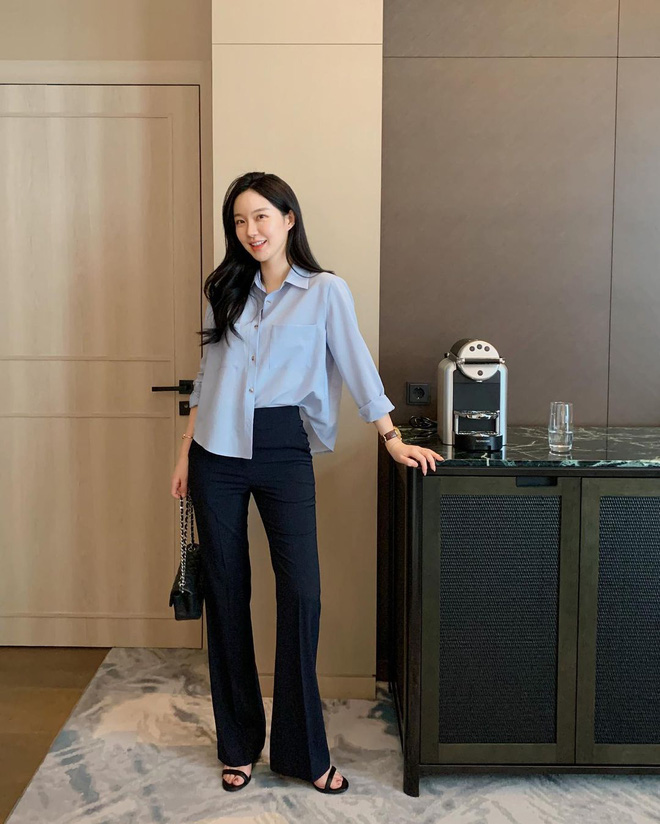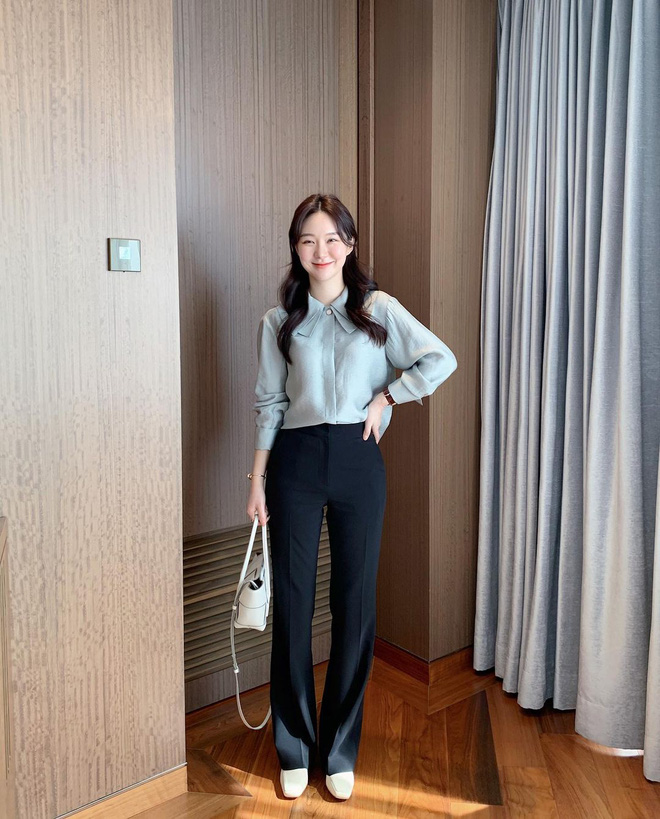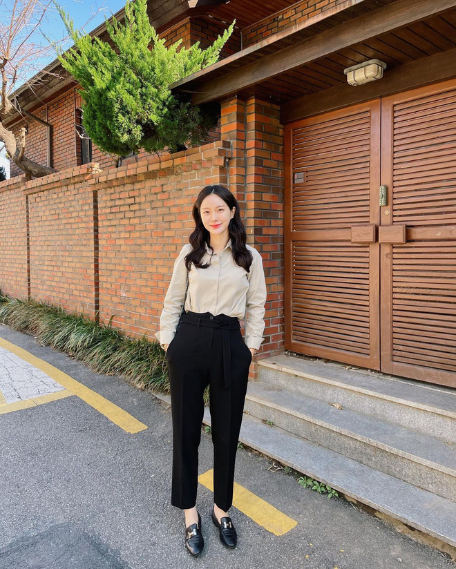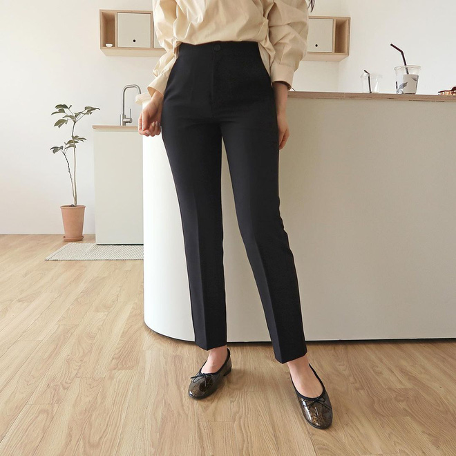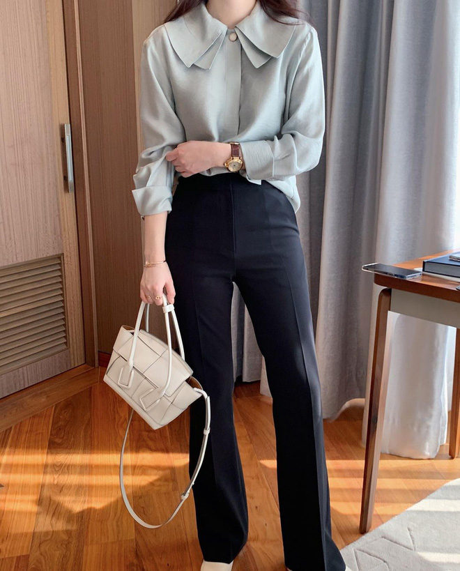 Sơ mi basic là một lựa chọn giản dị nhưng không bao giờ lỗi thời, nhất là khi mix với quần đen. Các nàng có thể phối hợp cùng các loại sơ mi trơn màu nude, beige, đen hoặc xanh nhẹ nhàng... Bên dưới, chọn cho mình một đôi loafer hoặc đôi giầy búp bê nữa nhé. Chỉ cần như vậy là đã tạo nên một diện mạo thanh lịch rồi.