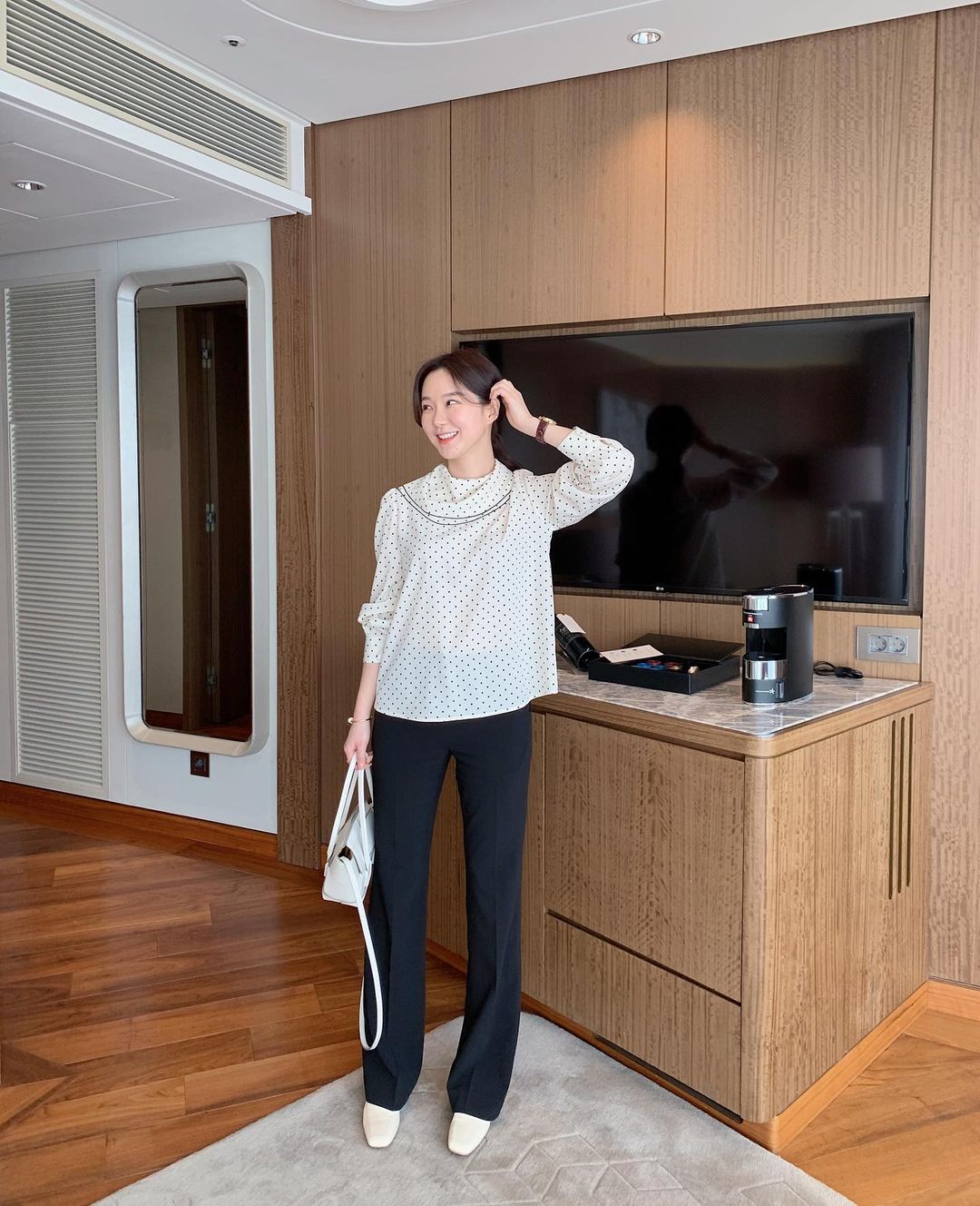 Combo Sang chảnh: Sơ mi cách điệu + Quần đen + Giày búp bê
