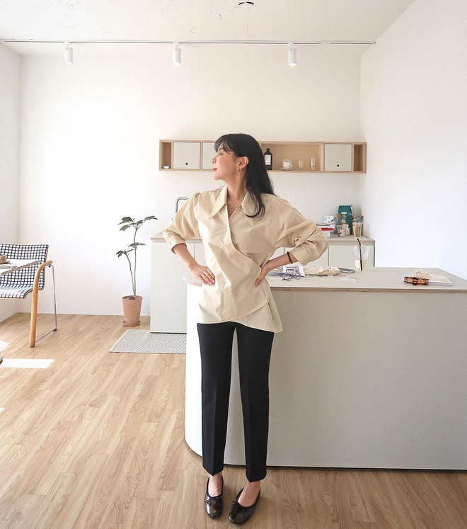 Nếu muốn trở nên thanh lịch, các cô gái hãy lựa chọn sơ mi trơn basic như hướng dẫn bên trên. Còn nếu muốn trở nên sang chảnh, hãy chuyển sang sơ mi cách điệu nhé. Các mẫu sơ mi có vạt chéo giả kimono, hoặc sơ mi cổ bèo là một vài ví dụ điển hình để bạn học hỏi. Với các mẫu sơ mi cách điệu này, bạn có thể lựa chọn sơ vin hoặc thả vạt... Đi cùng một đôi giày búp bê là chuẩn bài luôn nha!