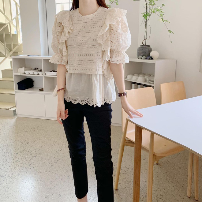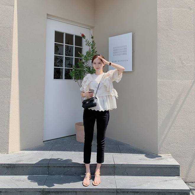Blouse điệu đà cứ ngỡ đâu lạc quẻ với quần đen. Ai ngờ, đây lại chính là item được các gái Hàn mê mệt. Bạn có thể lựa chọn một em thật bánh bèo với hoạ tiết bèo nhún hay một em khoét cổ cùng tay bồng kiêu kì, tất cả đều khiến bạn trở nên điệu đà trông thấy đó. Bên dưới, nhớ đừng quên mang kèm một đôi sandal dễ thương trong tủ đồ của mình nhé.