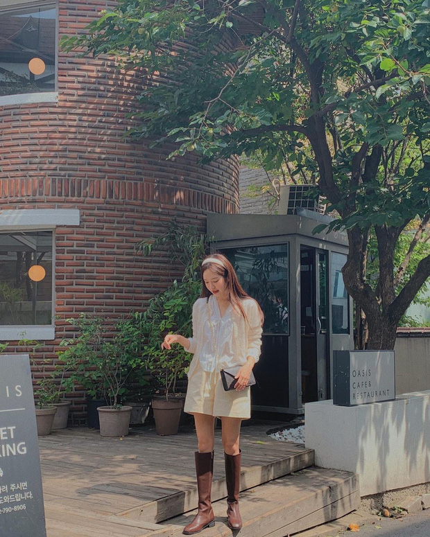 Nhắc đến mùa thu mà bỏ qua áo sơ mi thì quả thực là 1 thiếu sót lớn. Công thức diện sơ mi chuẩn gái Hàn thu này chính là: sơ mi oversized trơn + quần shorts + boots cao ngang gối. Toàn các item đơn giản mà tạo ra set đồ chanh sả lắm đó.