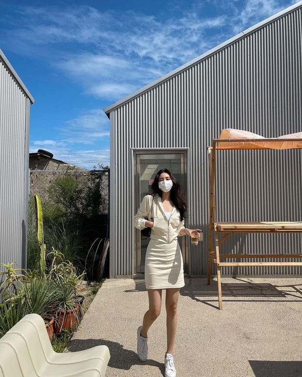 Phong cách Monochrome (màu đơn sắc) nghe qua tưởng nhàm chán nhưng nếu biết cách lựa chọn trang phục thì set đồ của bạn sẽ trở nên thời thượng lắm đó. Ví như cô bạn này, kết hợp áo khoác lửng cùng chân váy ôm nhẹ, thêm 1 đôi sneaker trắng nữa là vẻ ngoài đã trở nên rất năng động, trẻ trung.