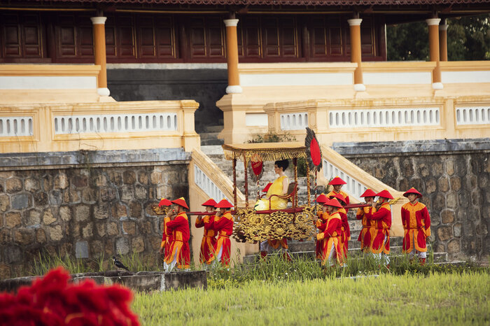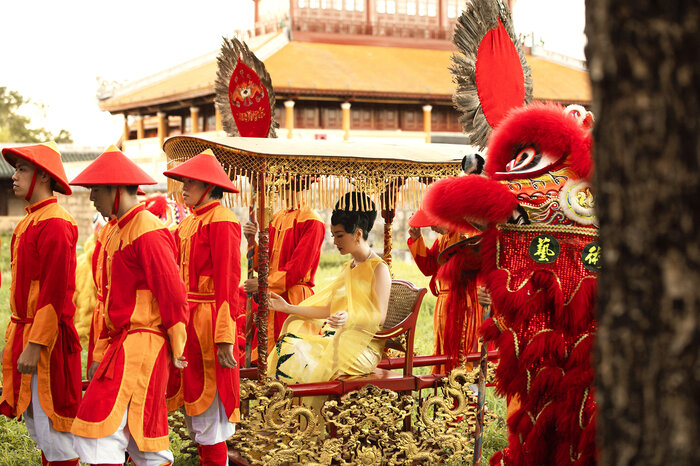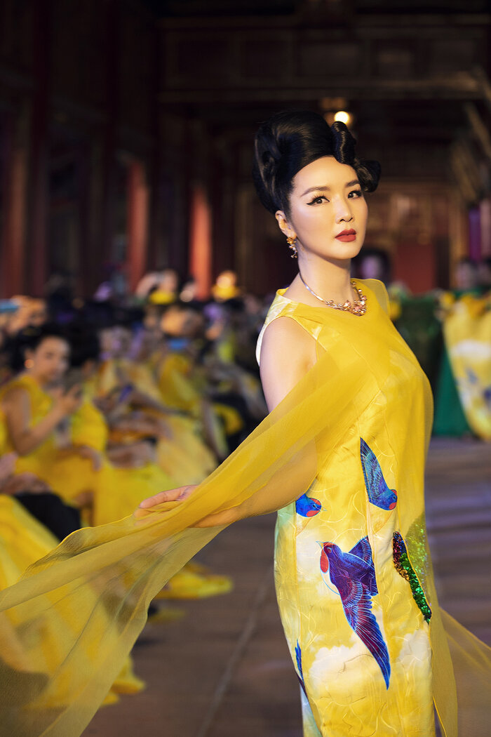 Màn xuất hiện của hoa hậu Giáng My trong show diễn "Vàng Son" tổ chức tại Huế được đầu tư một cách công phu. Đảm nhiệm vị trí kết lại show diễn, cô uy nghiêm ngồi trên kiệu, bước vào Trường Lang và được hai hàng cung nữ theo hầu, mặc áo choàng giữa đường catwalk, tất cả hòa quyện cùng nhau, mang đến cho khán giả một cảm xúc khó tả. Bên cạnh phần dàn dựng hoành tráng, Giáng My còn nhận được sự cổ vũ của khán giả vì nét quý phái, vẻ đẹp "không tuổi" và khả năng catwalk không thua kém dàn người mẫu chuyên nghiệp.