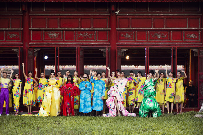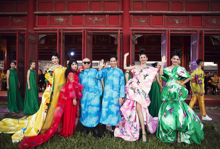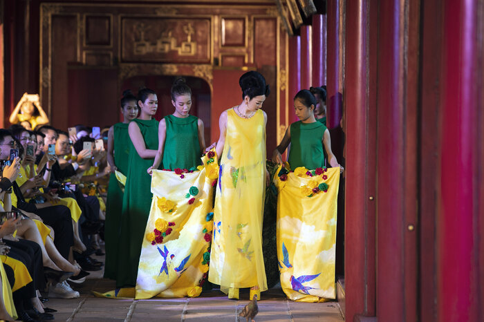 Trong không gian Trường Lang sơn son thiếp vàng bộ sưu tập lần này như một lời tri ân sâu sắc đến với mảnh đất cố hương nơi sinh ra và lớn lên của hai nhà thiết kế, tôn vinh những giá trị văn hoá truyền thống nhưng phát triển với các xu hướng hiện đại là tiêu chí mà bộ đôi luôn hướng đến cho các bst của mình.
