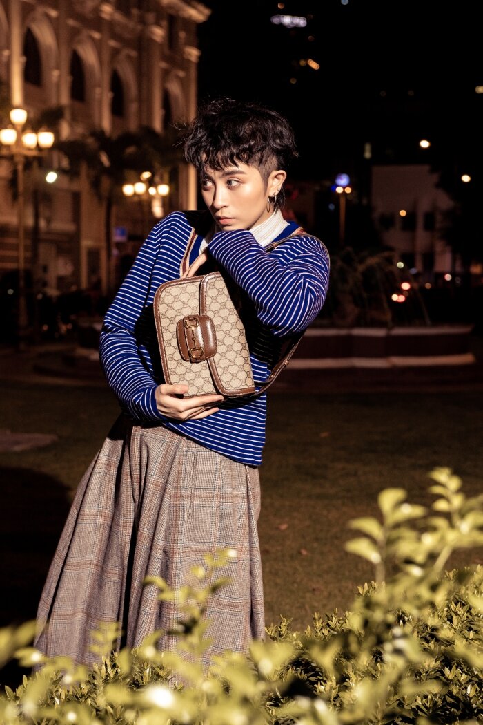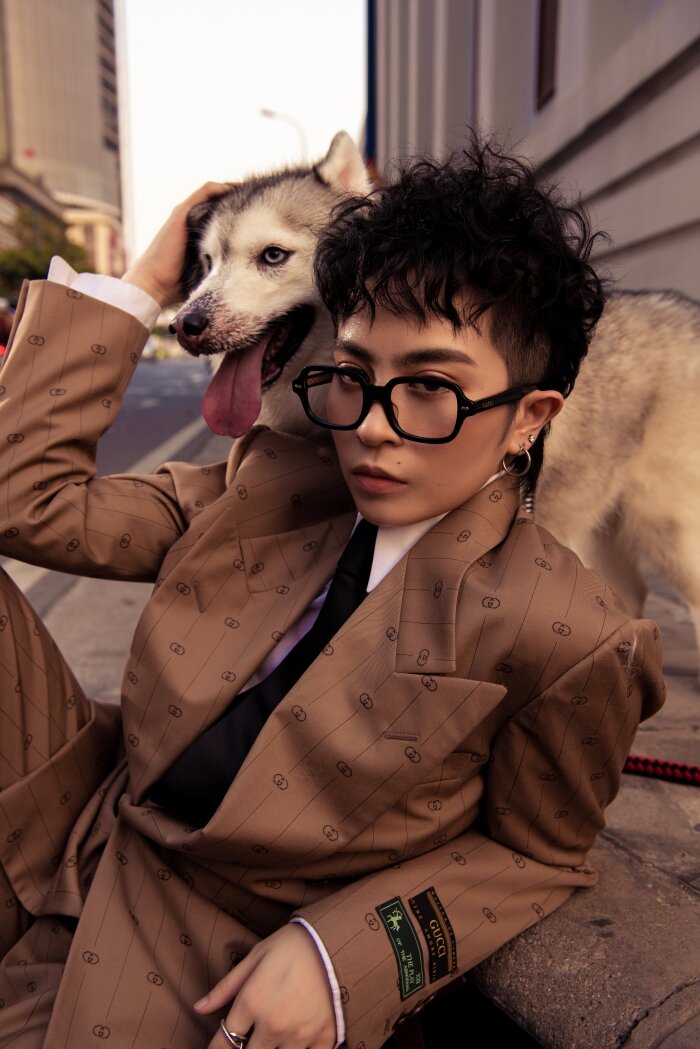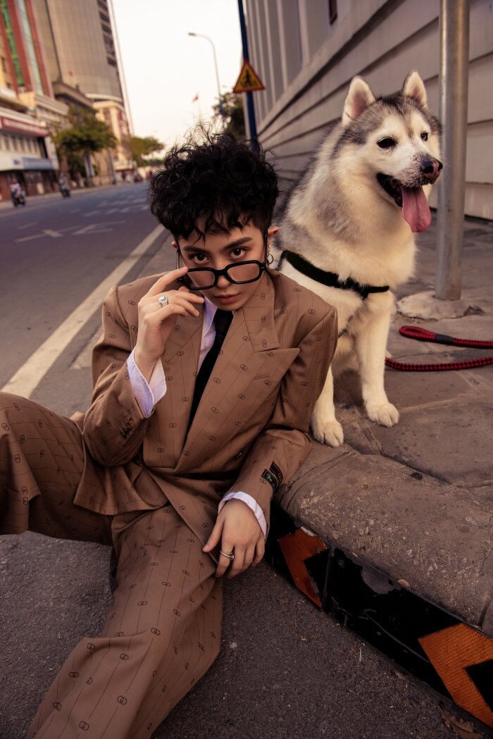 Trong bộ ảnh mới, không chỉ mang đến những khoảnh khắc vô cùng đáng yêu bên cạnh người bạn chí cốt Mocha, Gil Lê còn khoe vẻ ngoài hút mắt khi diện những trang phục đến từ BST Thu Đông 2019 của nhà mốt Gucci.