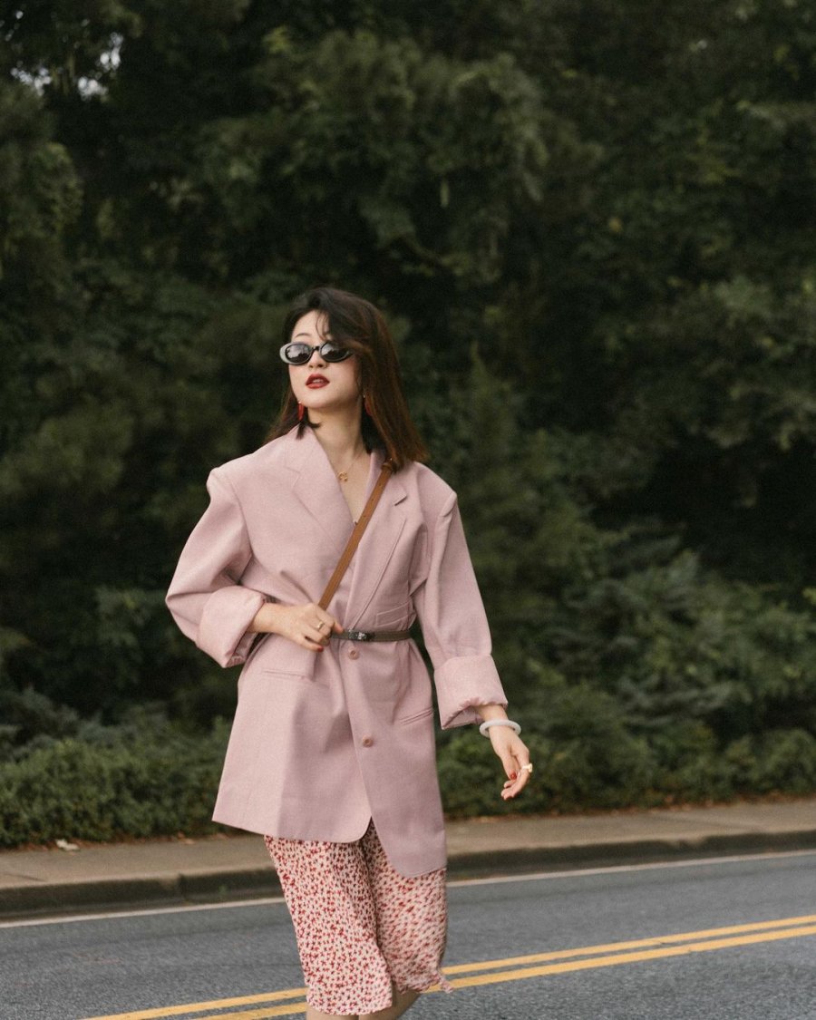 Áo blazer màu pastel như hồng, xanh pastel, tím nhạt… sẽ giúp thắp sáng cả outfit, mang đến nét ngọt ngào và trông sẽ trẻ trung hơn hẳn. Dù tươi tắn và rạng rỡ, áo blazer màu pastel vẫn đảm bảo cho chị em sự thanh lịch, trang nhã. Màu áo này cũng không quá khó để mix&match, nhưng để đảm bảo vẻ thời thượng level max, chị em nên kết hợp mẫu áo này với các item giản đơn như là: áo thun trắng, sơ mi nhã nhặn hay áo len trơn màu.