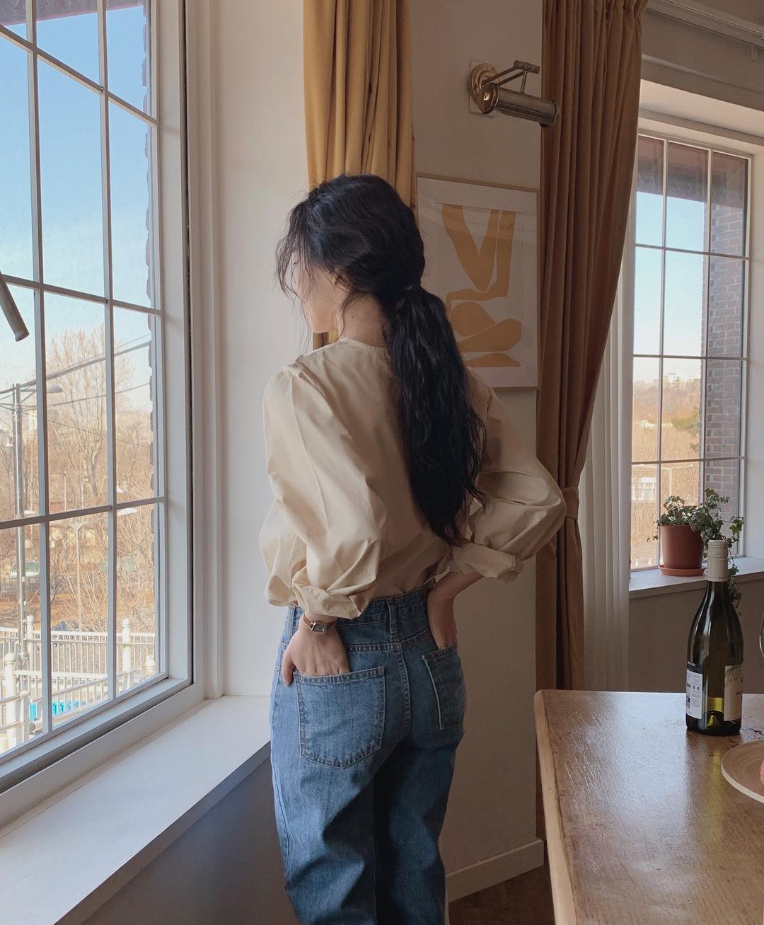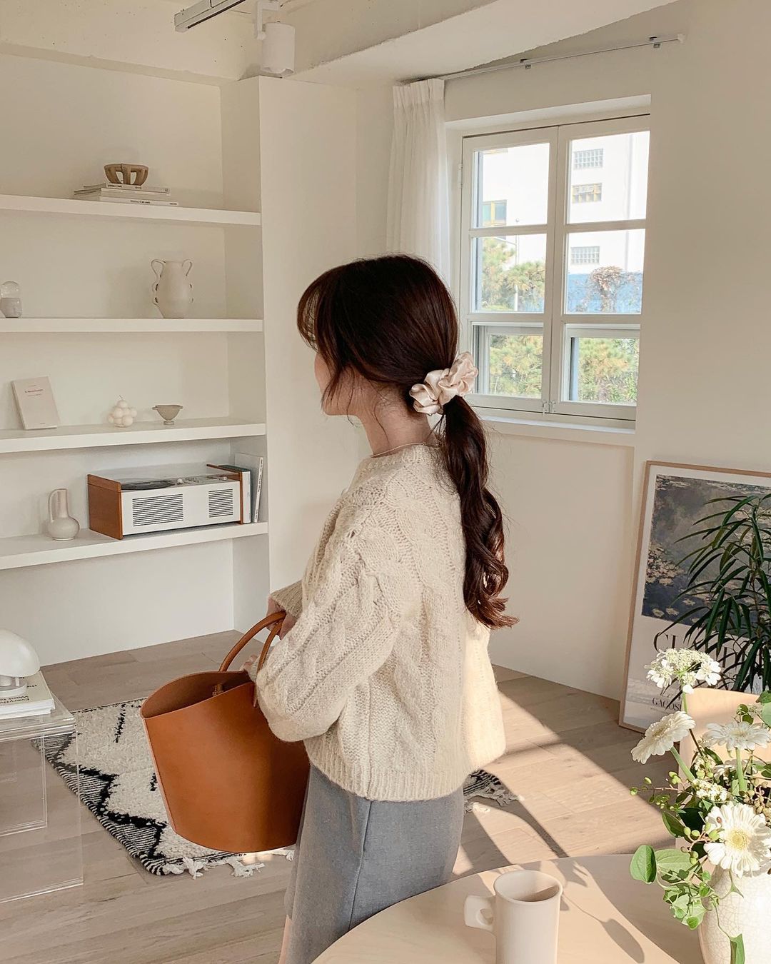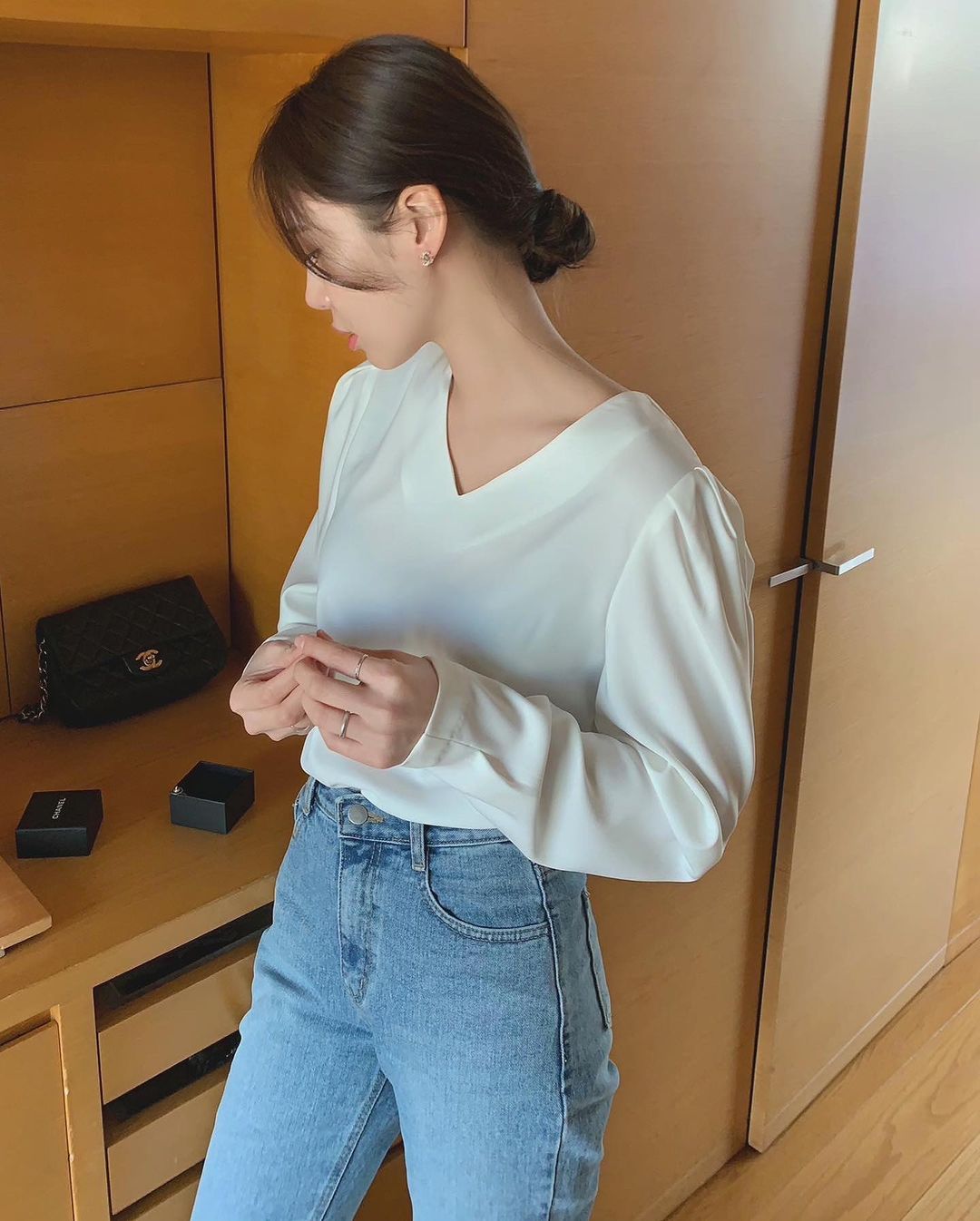 Bên cạnh tóc buộc thấp thì tóc búi thấp cũng phổ biến không kém. Khi hoàn thiện mái tóc này, hội sành điệu thường tạo hiệu ứng rối bời một chút để vẻ ngoài thêm sành điệu, phóng khoáng nhưng vẫn giữ được độ nữ tính. Bên cạnh đó, tuyệt chiêu nhấn nhá một chiếc dây buộc vải scrunchie cũng là một ý tưởng hay để nâng cấp vẻ kiêu kỳ, sang chảnh cho diện mạo.