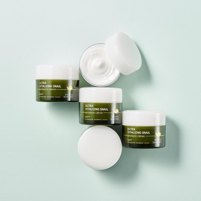 Sản phẩm mà bạn nên thử chính là: Dewytree Ultra Vitalizing Snail Cream. Lọ kem này rất đậm đặc, nó chứa chất nhầy ốc sên – thành phần đình đám trong làng mỹ phẩm Hàn bởi khả năng dưỡng ẩm và phục hồi da tuyệt vời. Bên cạnh đó, thành phần trehalose và adenosine có trong lọ kem sẽ làm đầy nếp nhăn, chống lão hóa cực hữu hiệu.