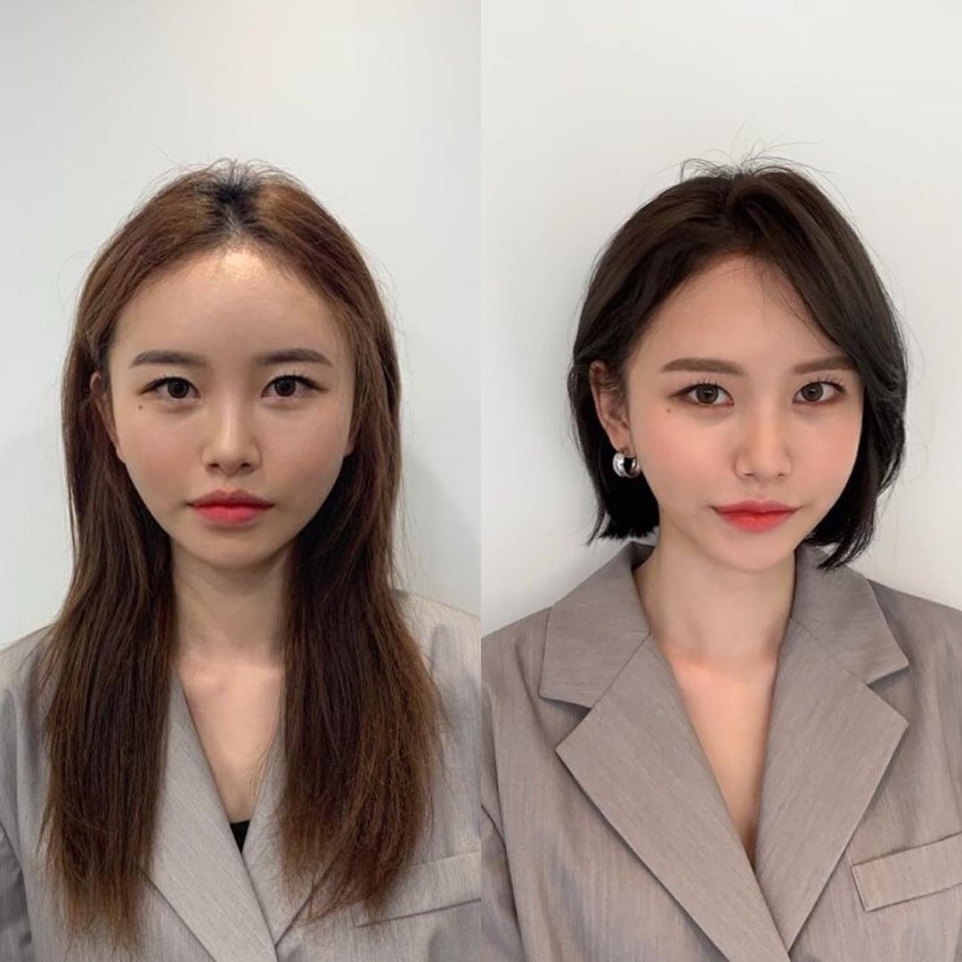 Với mặt góc cạnh, bạn có thể giúp cho khuôn mặt nhìn "mềm mại" hơn với kiểu tóc ngắn tỉa layer và uốn cụp, cùng với đó kiểu mái lưa thưa có độ uốn nhẹ cũng giúp cho mặt nhìn cân đối hơn.