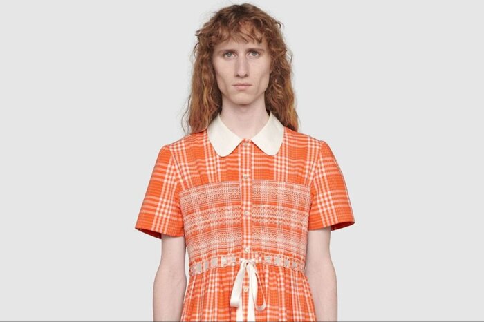 Trang Dailymail đưa tin về mẫu váy dành cho nam giới mà thương hiệu Gucci mới cho ra mắt. Thiết kế của hãng mốt Italy làm từ vải tartan màu cam với kiểu cổ Peter Pan, cúc áo khảm xà cừ, thắt nơ bằng satin ở eo, thuộc bộ sưu tập Thu Đông 2020 dành cho nam. Qua chiếc váy, nhà mốt Italy muốn xóa bỏ những định kiến về giới tính.