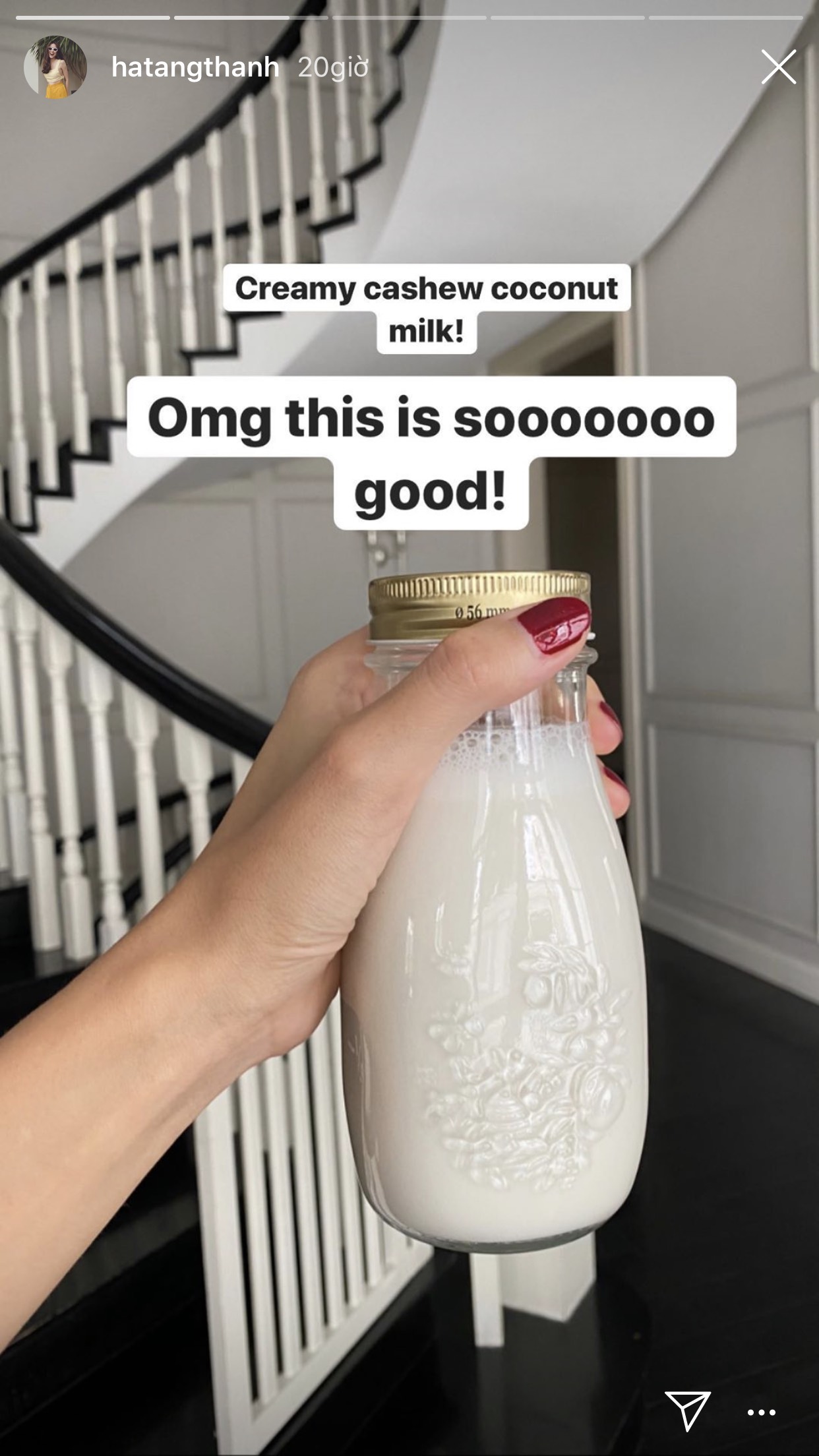 Đây là loại sữa mà Hà Tăng yêu thích và thường xuyên tự làm ở nhà. So với sữa động vật, sữa hạnh nhân có chứa ít calo và chất béo, giúp hỗ trợ giảm cân, tốt cho thị lực và giúp xương chắc khỏe. Bên cạnh đó, trong sữa hạnh nhân còn giàu vitamin E giúp chống oxy hóa, làm đẹp da. Sữa hạnh nhân là loại sữa tuyệt vời được nhiều người ăn kiêng sử dụng thay cho những loại sữa động vật thông thường. Hà Tăng có thể uống riêng sữa hạnh nhân hoặc dùng để trộn cùng yến mạch.