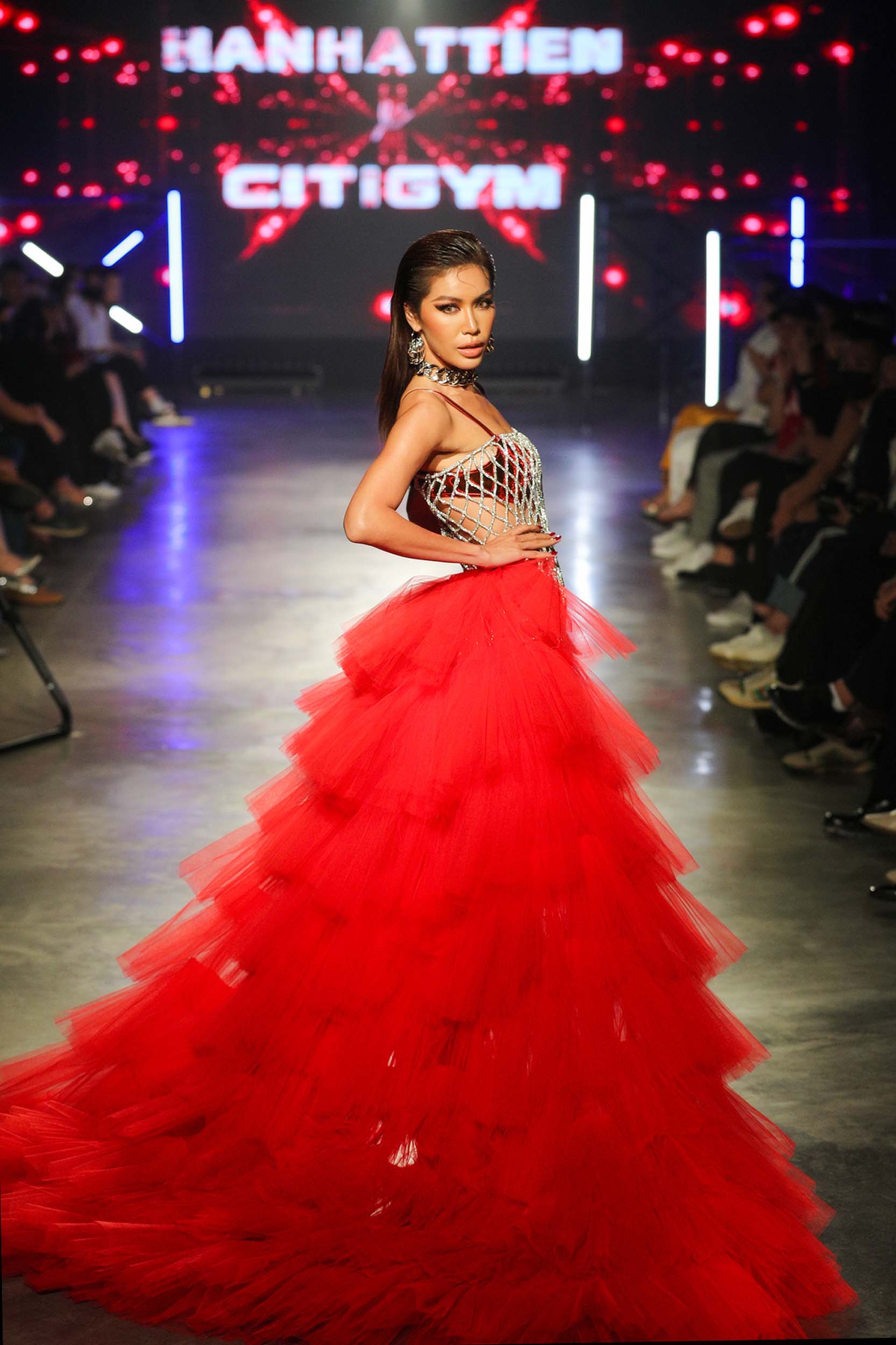 Show diễn vẫn "duy trì nhiệt độ" cho đến look cuối cùng, với sự xuất hiện của siêu mẫu Minh Tú. Cô vẫn luôn là nàng thơ của NTK Hà Nhật Tiến. Thiết kế mà Minh Tú diện tổng hợp tất cả những yếu tố tạo nên BST "Citygym": mạnh mẽ, khỏe khoắn nhưng không kém phần nữ tính, quyến rũ.