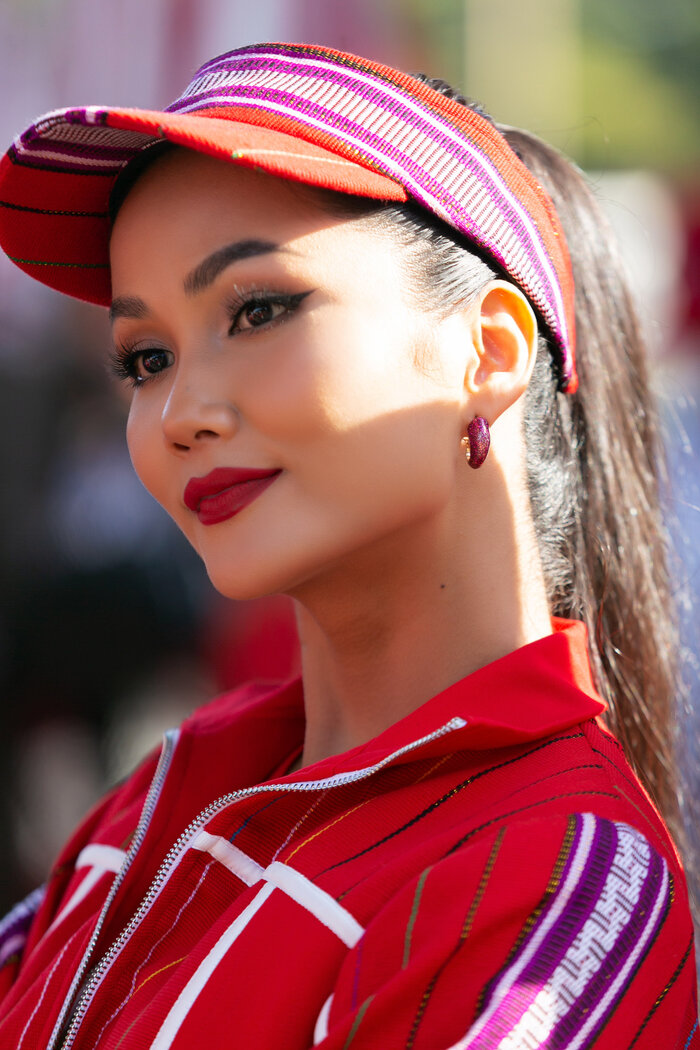 Giữ vai trò đồng hành cùng cuộc đua xe đạp năm nay, H’Hen Niê tiếp thêm sức mạnh, cổ vũ tinh thần cho các tay đua. Mỗi lần xuất hiện, cô nàng lại khiến khán giả bất ngờ bởi hình ảnh “tắc kè hoa” đa màu sắc. Nếu như ở chặng đua Tam Kỳ - Quảng Nam, H’Hen Niê diện nguyên cây xanh neon cùng mái tóc bạch kim cá tính, thì lần này, khi đoàn đua đi qua Buôn Ma Thuột - vùng đất Tây Nguyên yêu dấu của mình, H’Hen Niê quyết định mang bản sắc dân tộc lên trên bộ trang phục.