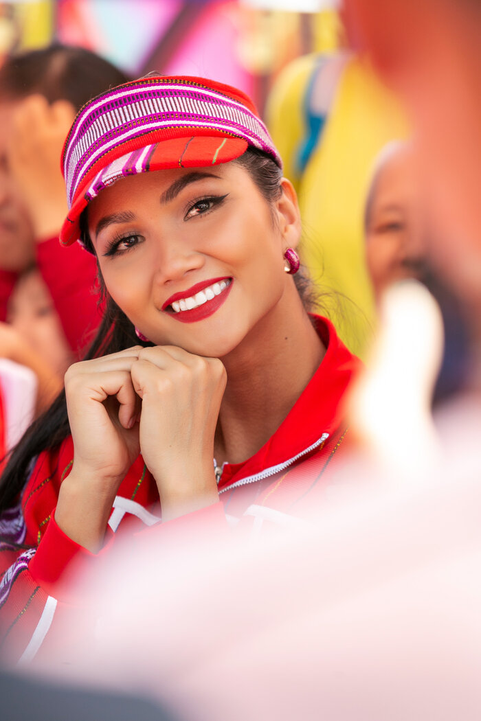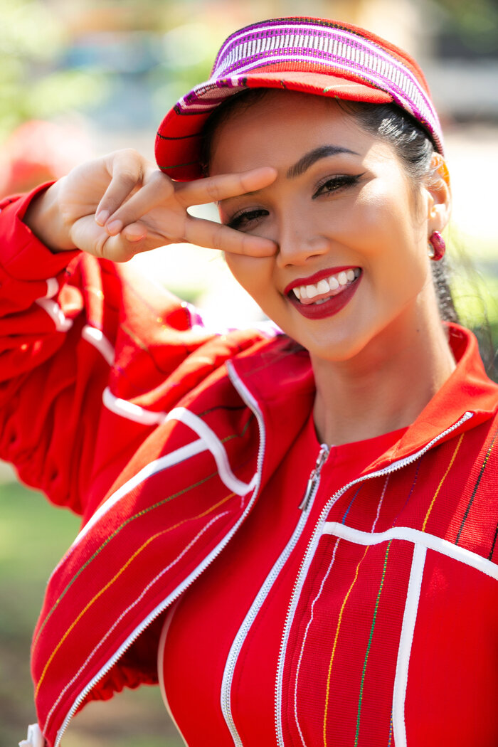 H’Hen Niê thích nhất là chiếc nón lưỡi trai hở chớp khiến cô vô cùng xúc động khi ê-kíp gửi set trang phục cho cô. H’Hen Niê chia sẻ: “Phải cảm ơn các anh chị team stylist rất nhiều, vừa thương Hen, vừa hiểu Hen, chắc Hen sẽ diện chiếc nón này luôn quá”.