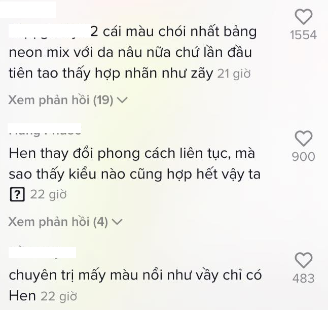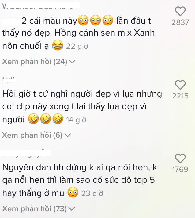 Mặc dù bộ trang phục với hai sắc màu cực 'chóe' là hồng cánh sen và xanh nõn chuối kết hợp với phụ kiện và nail cùng tone nhưng H'Hen Niê vẫn cực sang chảnh, không hề sến. Nhiều fan đã hết lời khen ngợi set đồ của H'Hen Niê, thậm chí thốt lên: 'Chưa bao giờ thấy hồng cánh sen và xanh nõn chuối lại sang đến thế'.