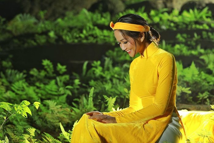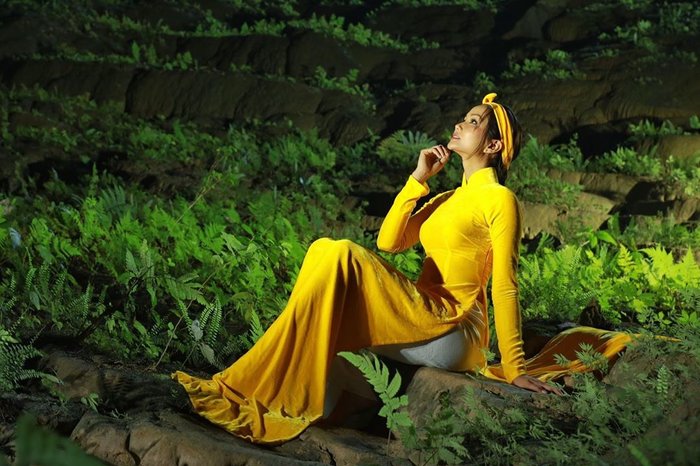 Bộ ảnh áo dài này được H'Hen Niê cùng ekip thực hiện vào ngày thứ 3 trong hành trình 4 ngày chinh phục hang Sơn Đoòng. Giữa khung cảnh thiên nhiên hùng vĩ của 'Vườn địa đàng', H'Hen Niê diện chiếc áo dài màu vàng tươi, khoe vẻ đẹp vô cùng rạng rỡ. Nụ cười hồn hậu, đẹp tự nhiên xuất phát từ tấm lòng nhân ái. Có thể thấy, đây là một trong những bộ ảnh nghệ thuật mang đậm tính nhân văn nhất mà nàng hậu đã thực hiện.