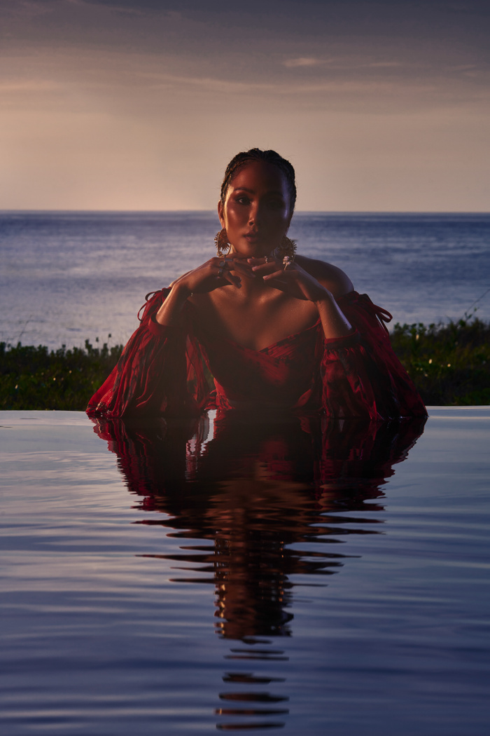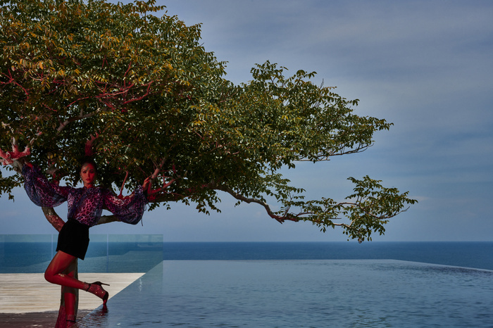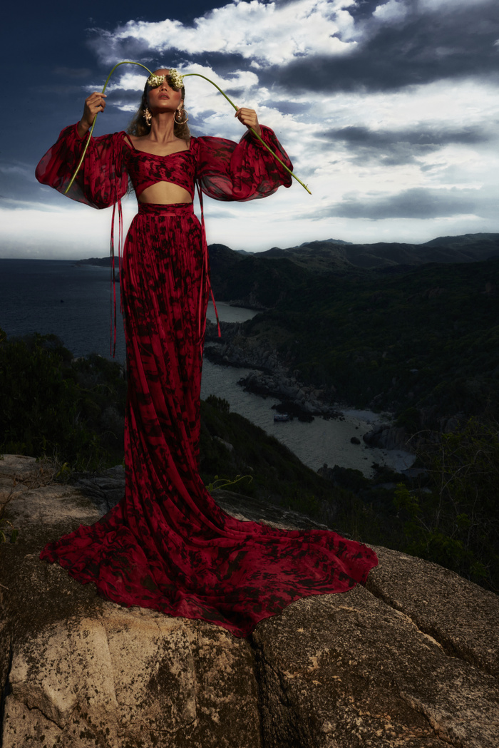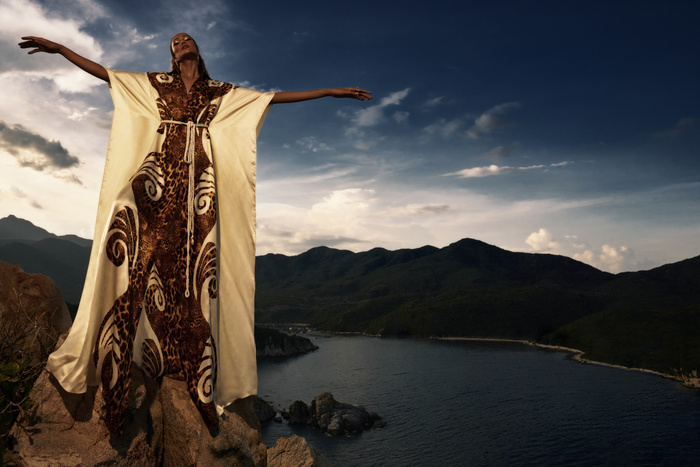 H’hen Niê trong bộ ảnh tựa như một nữ thần gợi cảm, quyền lực. Để toát lên được tinh thần nhà thiết kế mong muốn, hoa hậu diện những mẫu váy dạ hội trong khi vẫn đứng cheo leo trên những mỏm đá, vách núi nguy hiểm hay ngâm mình dưới làn nước.