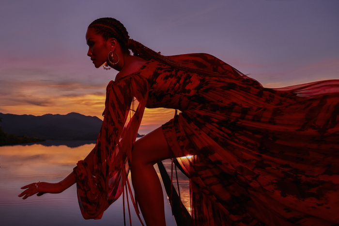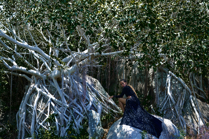 Giữa cảnh sắc thiên nhiên hùng vĩ của Vịnh Vĩnh Hy, Ninh Thuận, H’Hen Niê xuất hiện đầy quyến rũ, mạnh mẽ hệt như nữ thần biển cả. Bộ sưu tập cũng lấy ý tưởng là sự kết hợp giữa núi rừng hoang dã cùng với cát vàng, nước biển rực rỡ dưới ánh nắng mặt trời, mượt mà như những dải lụa.