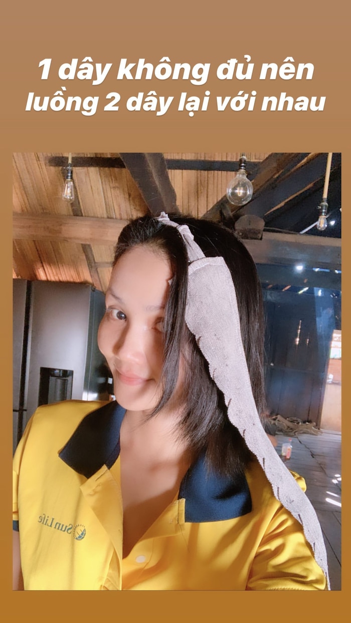 Top 5 Miss Universe 2018 tiết lộ, vật dụng được cô sử dụng làm tóc chính là 2 sợi dây buộc rèm cửa. Cô dùng hai sợi dây để tết tóc và thành quả thực sự khiến nhiều người trầm trồ. Và chính sự giản dị, chân chất như thế này của H’Hen Niê đã ghi điểm rất nhiều trong lòng khán giả.