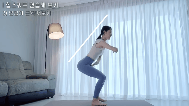 Tư thế đúng nhất là bạn phải giữ lưng thẳng xuyên suốt từ khi đứng thẳng đến khi hạ thấp trọng tâm. Như vậy động tác mới tác động trực tiếp vào mông và vòng 2 chứ không ảnh hưởng đến bắp đùi khiến đùi bị to.