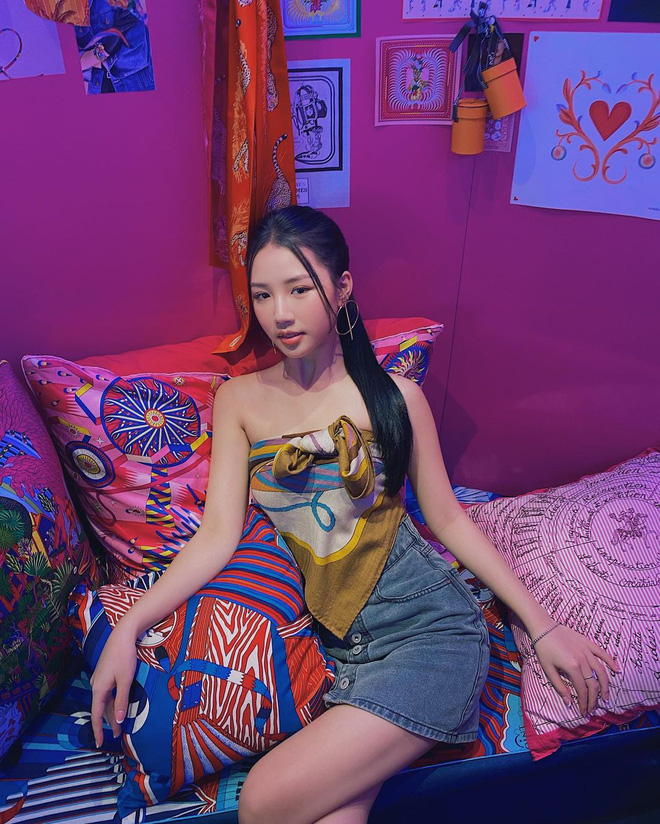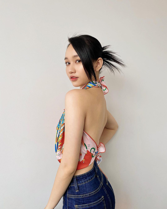 Bắt trend hơi trễ nhưng không vì thế mà Lương Thuỳ Linh kém cạnh chị em. Thay vì chọn cách mix với quần/váy thông thường, cô bạo dạn mix full set toàn khăn là khăn. Đã vậy, cô còn thắt khăn khá ngắn để khoe được mọi ưu thế về hình thể.