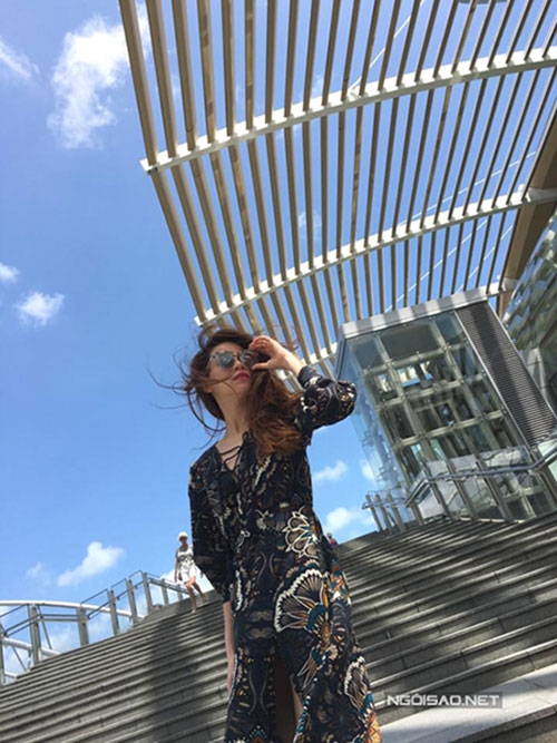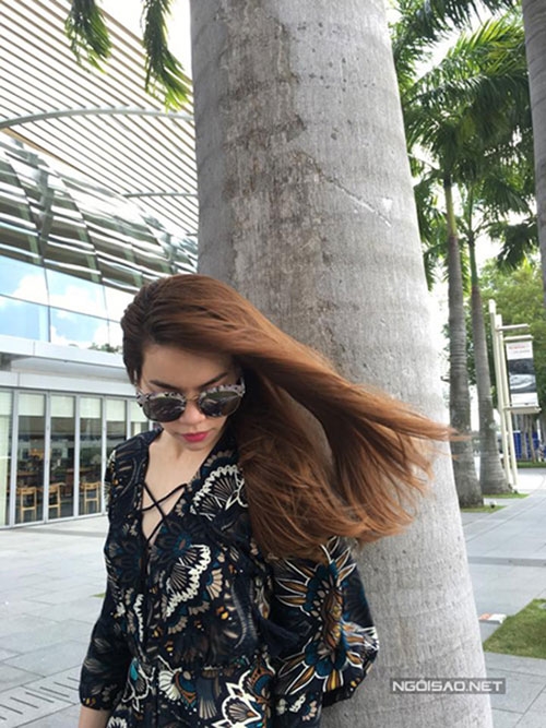 Trong chuyến đi Singapore mới đây, Hồ Ngọc Hà được một người bạn ngẫu hứng ghi lại hình ảnh bằng điện thoại. Nữ ca sĩ rạng rỡ trong nắng buổi sáng ở đảo quốc sư tử. |