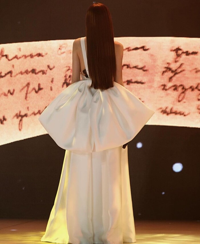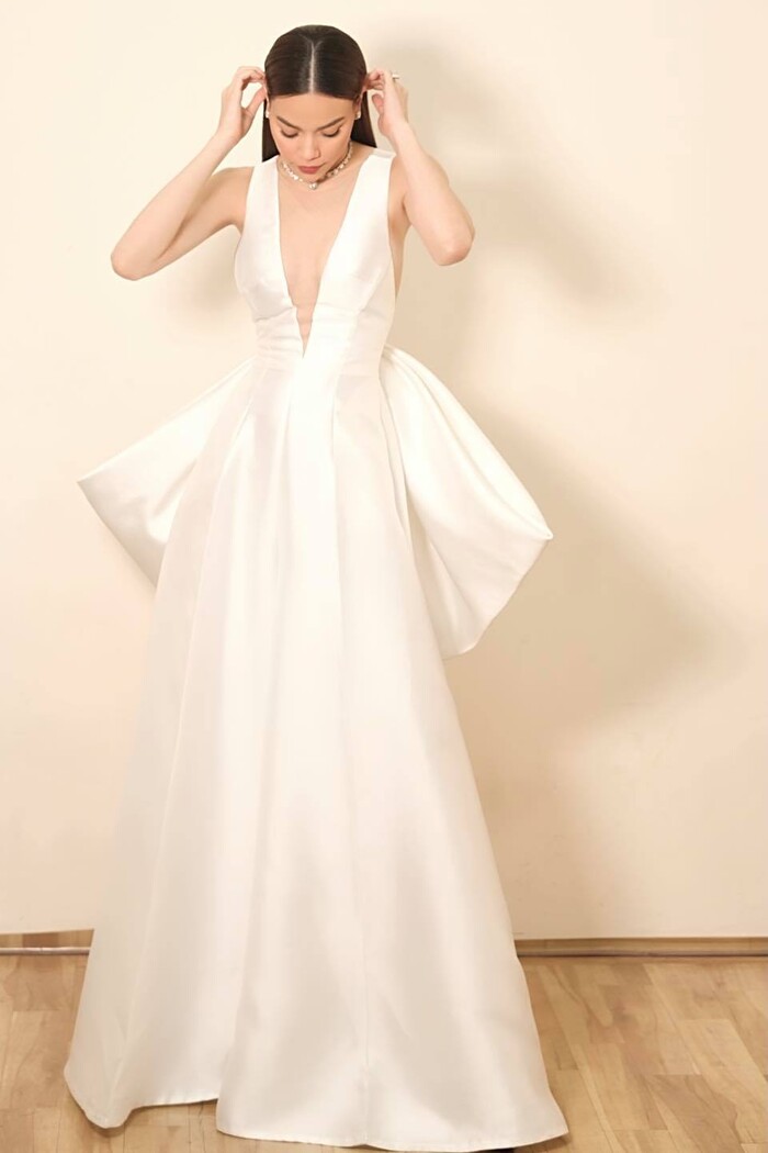 Bà mẹ ba con xinh đẹp diện jumpsuit trắng xẻ ngực sâu cùng chi tiết nơ to gắn sau lưng cứ phải khẳng định rằng thần thái không lẫn vào ai được.