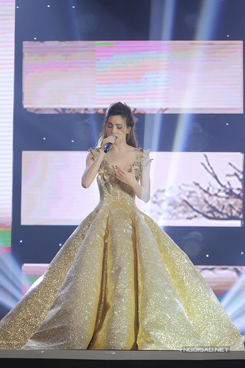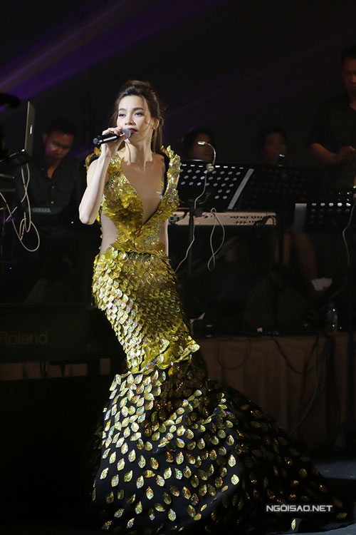 Nữ ca sĩ mặc trang phục do 3 nhà thiết kế nổi tiếng thực hiện độc quyền, tối 20/4.