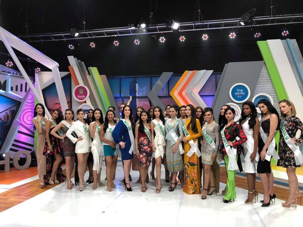 Hôm nay (2/3), Hoài Sa cùng tất cả các thí sinh có buổi ghi hình phỏng vấn cho kênh truyền hình Channel 3 nổi tiếng của Thái Lan. Tại sự kiện này, Hoài Sa lựa chọn áo dài họa tiết hoa sen, tóc đen buông xõa vô cùng nền nã, nữ tính.