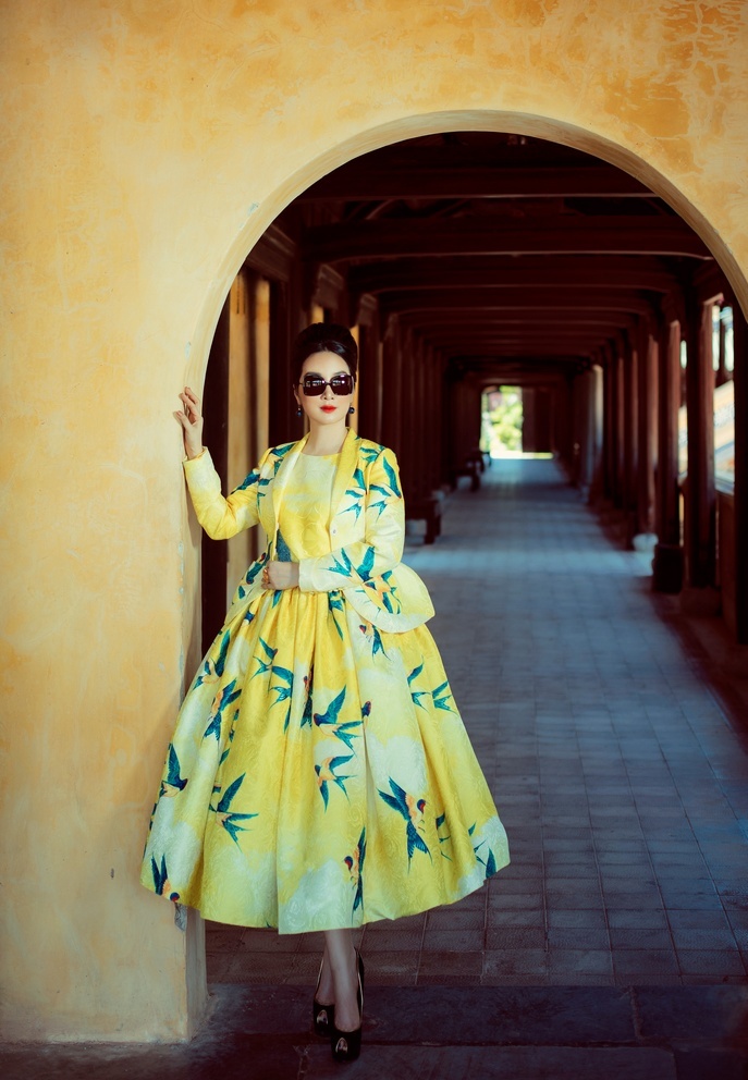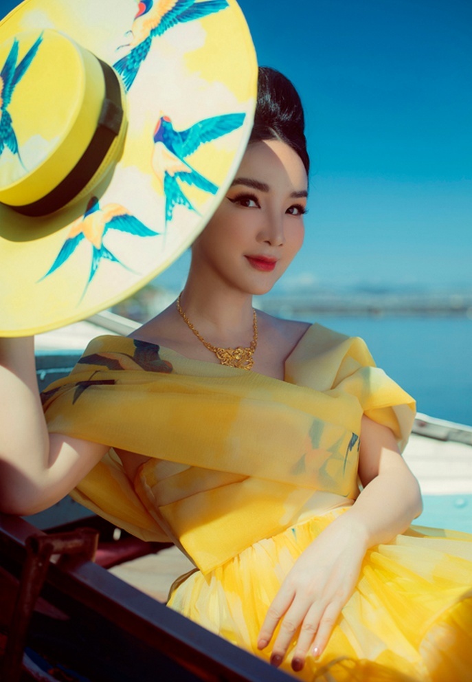 Hoá thân vào quý cô với vẻ đẹp đài cát sang trọng, Hoa hậu Giáng My xuất hiện trong bộ sưu tập Vàng Son / A Better Day sẽ được giới thiệu trong show diễn tại Huế trong thời gian sớm nhất.