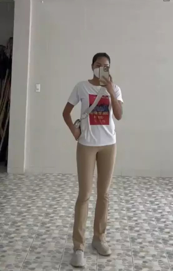 H'Hen Niê chia sẻ set đồ đi thiện nguyện đơn giản nhẹ nhàng với quần vải dáng ôm và áo phông thoải mái. Set đồ ghi điểm với nét đơn giản gần gũi nhưng cô lại diện quần nude tiệp màu da khiến dân tình tá hỏa nhìn qua cứ tưởng nàng Hậu không mặc quần. Ở vài góc chụp H'Hen Niê còn lộ vùng nhạy cảm chỉ vì dáng đứng thiếu tinh tế.
