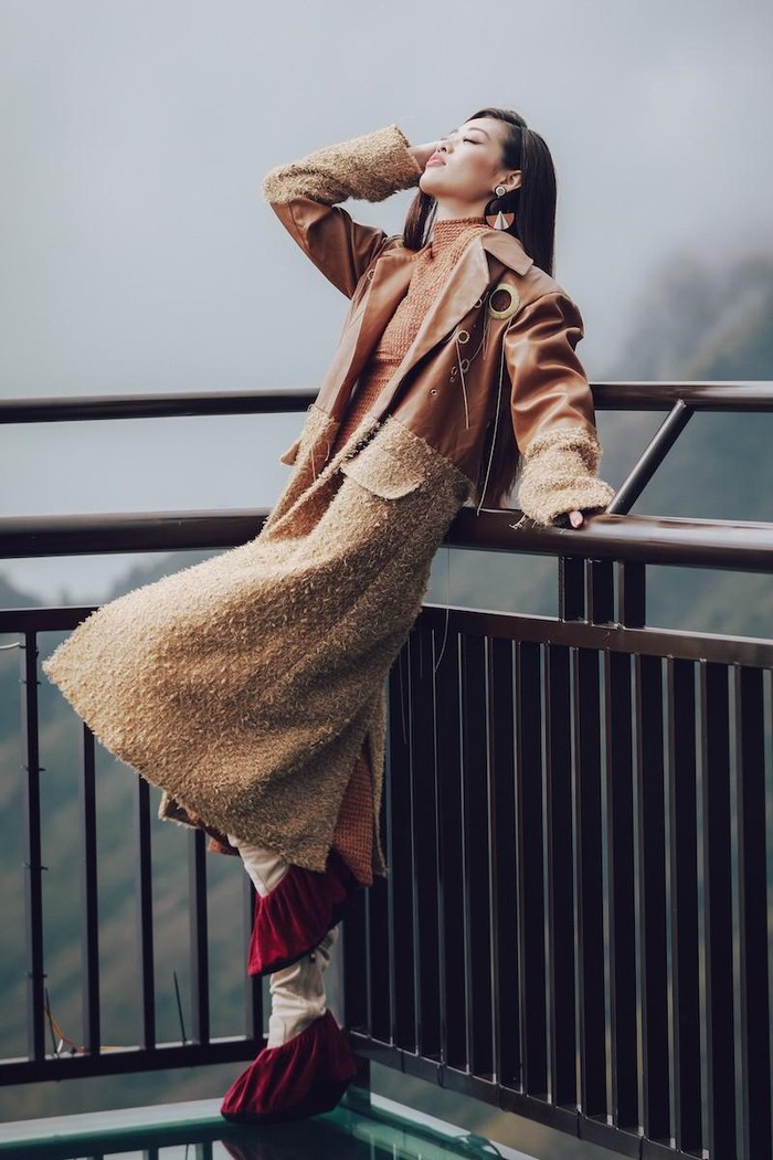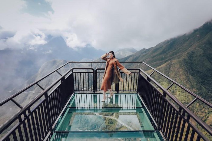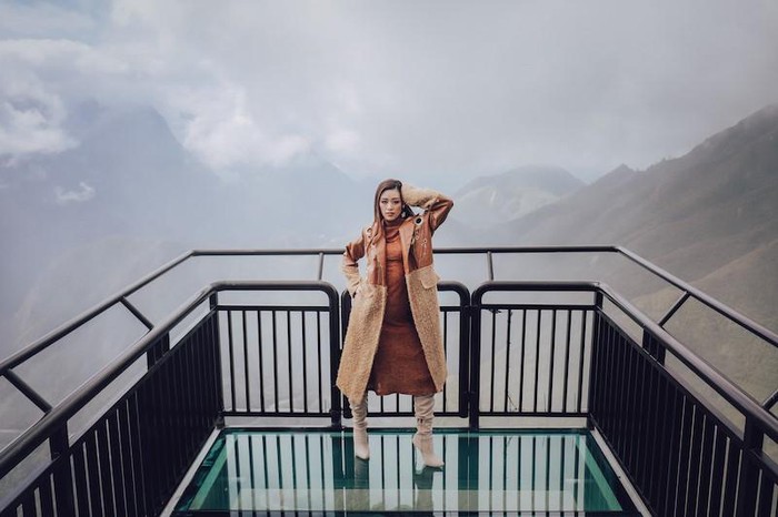 Hoa hậu Khánh Vân vừa có cuộc dạo chơi tại khu vực Cổng Trời của đèo Ô Quy Hồ, Lai Châu. Cô thích thú với cầu kính vươn ra khỏi vách núi ở độ cao 300m. Khánh Vân cùng ê-kíp thực hiện bộ ảnh để ghi dấu kỷ niệm.
