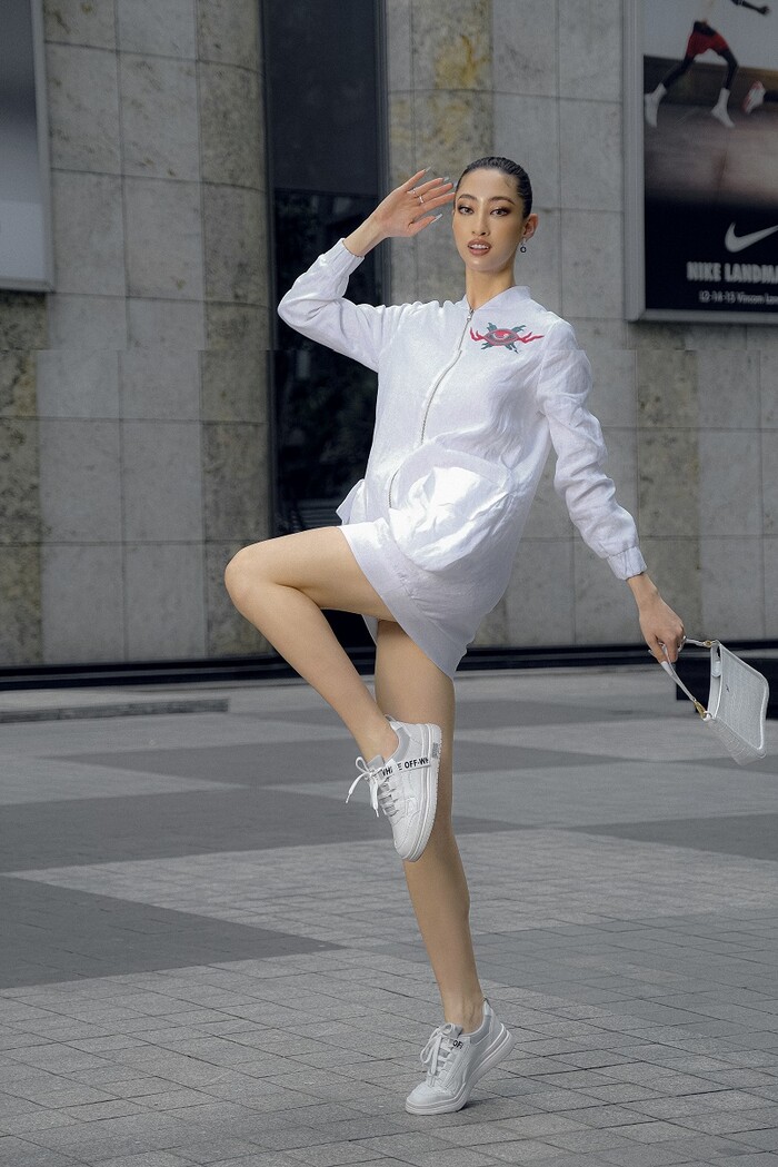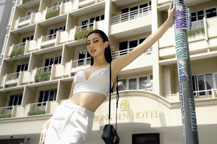 Trong bộ ảnh thời trang mới nhất, các set đồ màu trắng khai thác tối đa vóc dáng lý tưởng của Hoa hậu Lương Thuỳ Linh với đôi chân dài, vòng eo thon gọn cùng "khuôn ngực" đẫy đà.