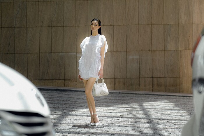 Hoa hậu Lương Thùy Linh diện đồ trắng